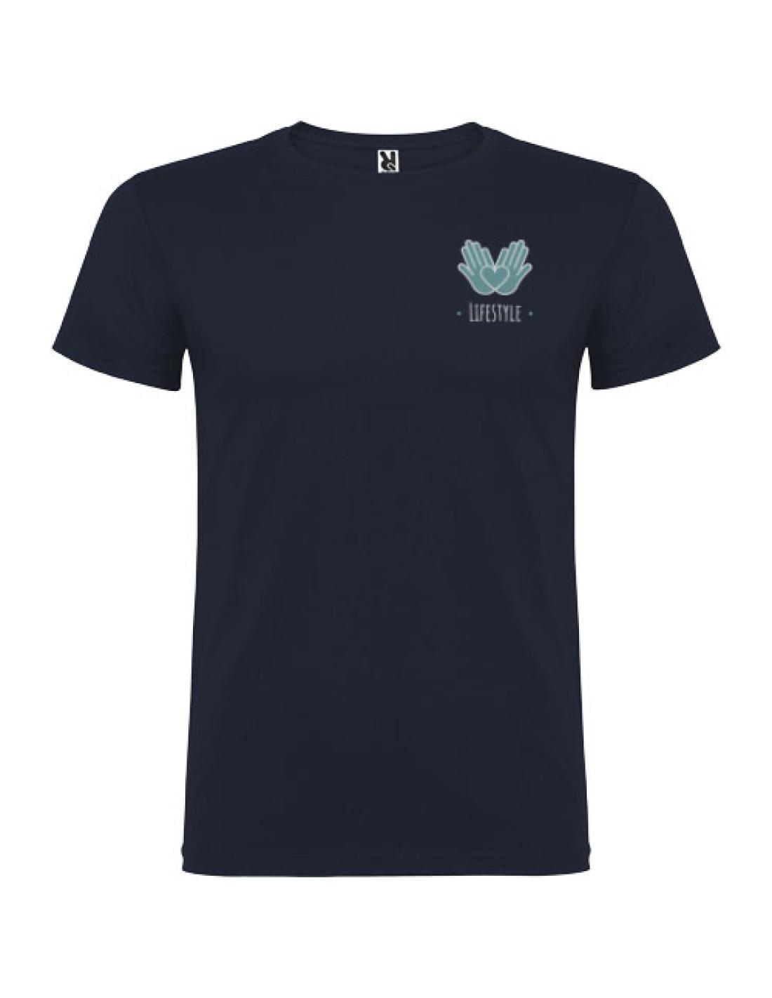 Camiseta de manga corta de cuello redondo doble con elastano, confeccionada en tejido tubular en tallas de adulto y con cubrecosturas reforzado en cuello. Etiqueta extraíble. El modelo mide 190 cms y lleva la talla L.
