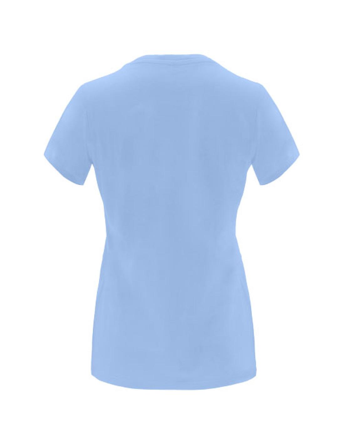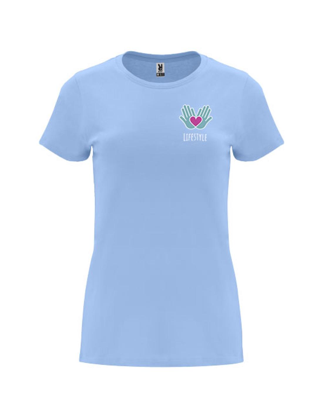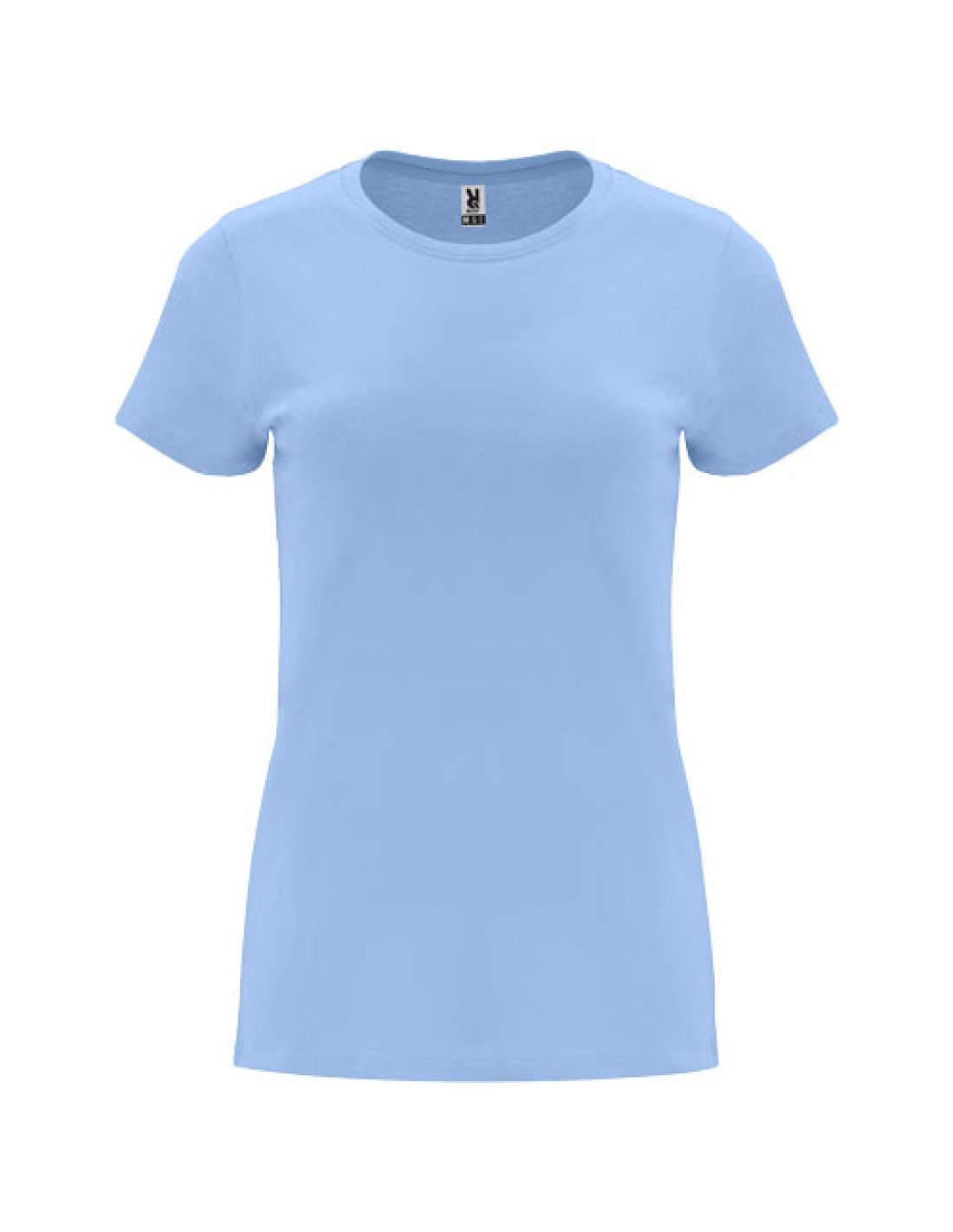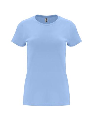 Camiseta de manga corta entallada para mujer. Cuello redondo en canalé 1x1 con cubrecosturas en el cuello. Etiqueta extraíble.