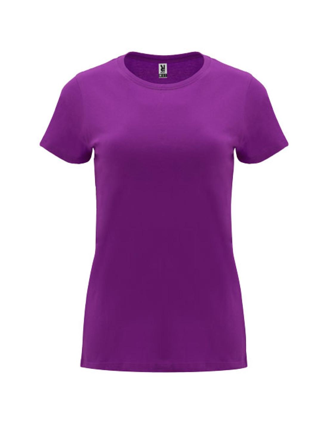Camiseta de manga corta entallada para mujer. Cuello redondo en canalé 1x1 con cubrecosturas en el cuello. Etiqueta extraíble.