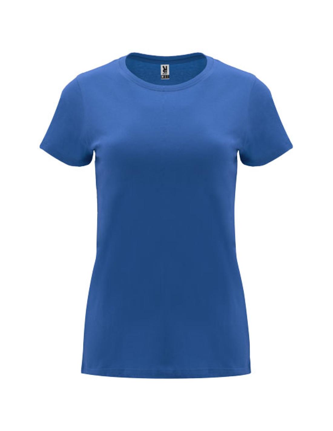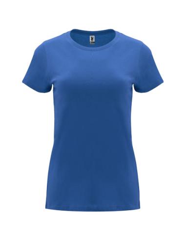 Camiseta de manga corta entallada para mujer. Cuello redondo en canalé 1x1 con cubrecosturas en el cuello. Etiqueta extraíble.
