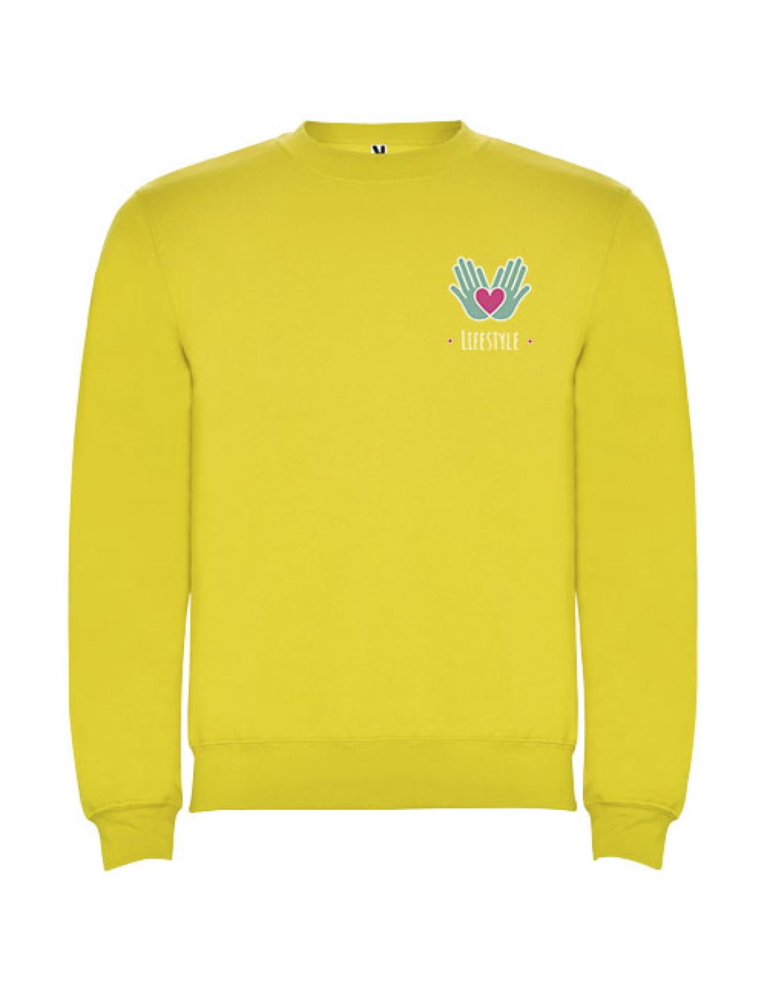 Sudadera en diseño clásico, con cuello, puños y cintura de canalé 1x1 con elastano. Cubrecosturas reforzado en cuello. Etiqueta extraíble. El modelo mide 185 cms y lleva la talla L.
