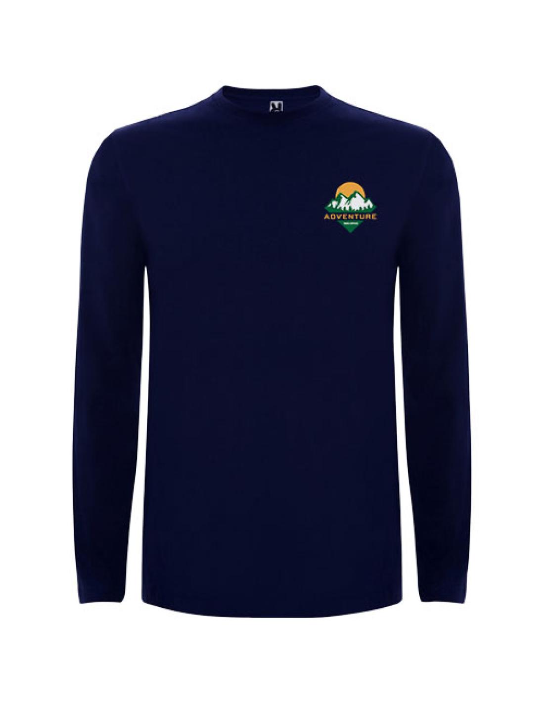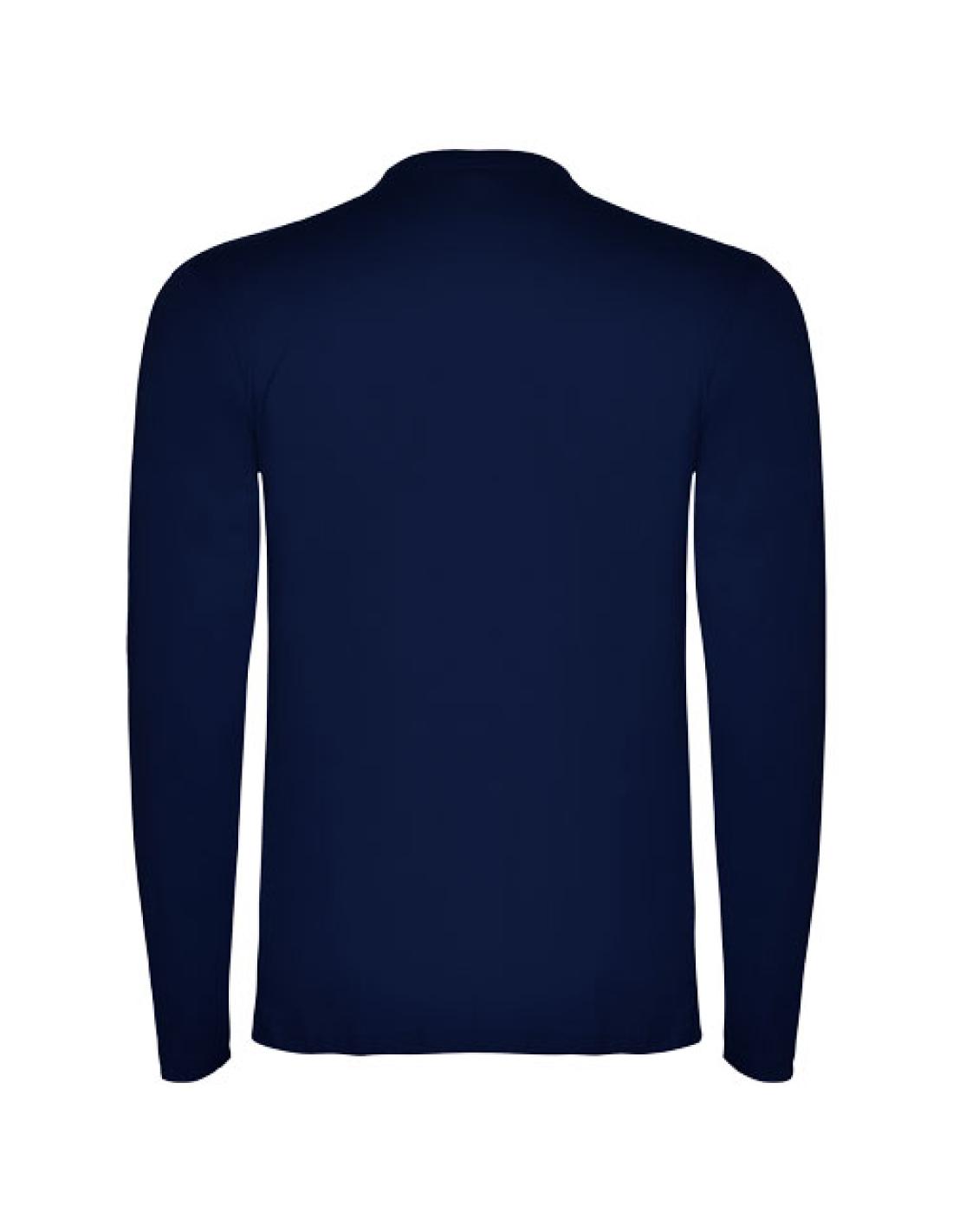 Camiseta de manga larga, tejido tubular y cuello redondo de 4 capas. Cubrecosturas de refuerzo en cuello y hombro. Sin puños. Etiqueta extraíble. Diseño tubular en tallas de adultos, costuras laterales en talla infantil. El modelo mide 185 cms y lleva la talla L.