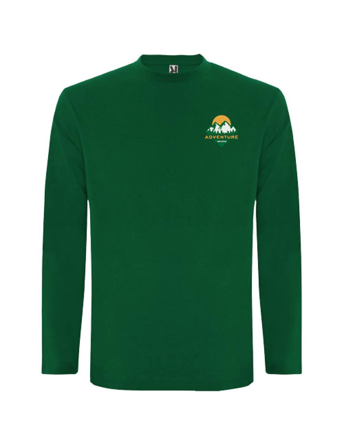 Camiseta de manga larga, tejido tubular y cuello redondo de 4 capas. Cubrecosturas de refuerzo en cuello y hombro. Sin puños. Etiqueta extraíble. Diseño tubular en tallas de adultos, costuras laterales en talla infantil. El modelo mide 185 cms y lleva la talla L.