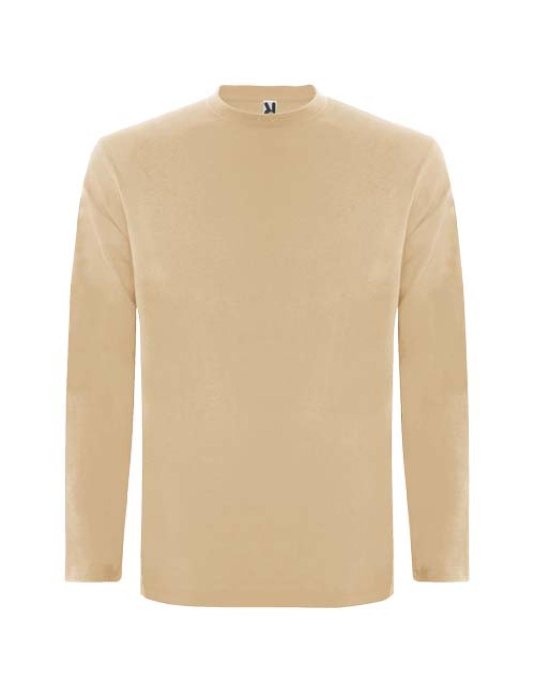 Camiseta de manga larga, tejido tubular y cuello redondo de 4 capas. Cubrecosturas de refuerzo en cuello y hombro. Sin puños. Etiqueta extraíble. Diseño tubular en tallas de adultos, costuras laterales en talla infantil. El modelo mide 185 cms y lleva la talla L.