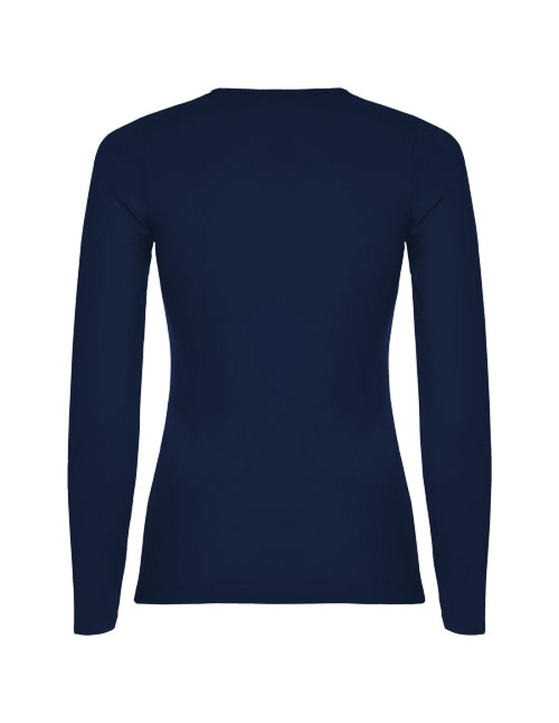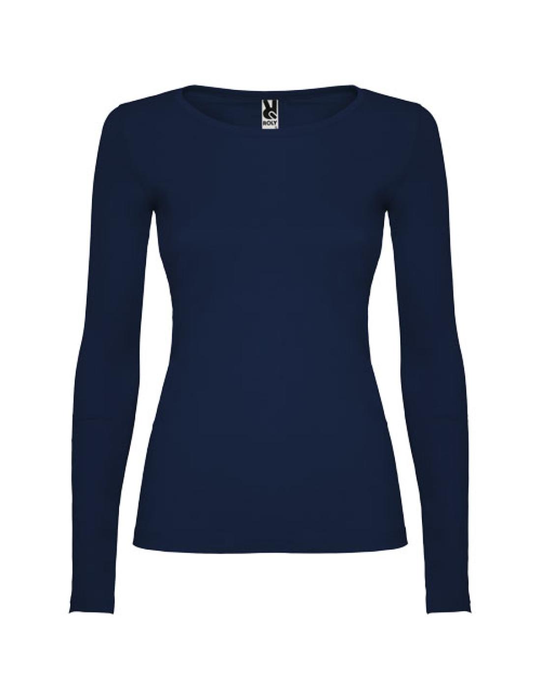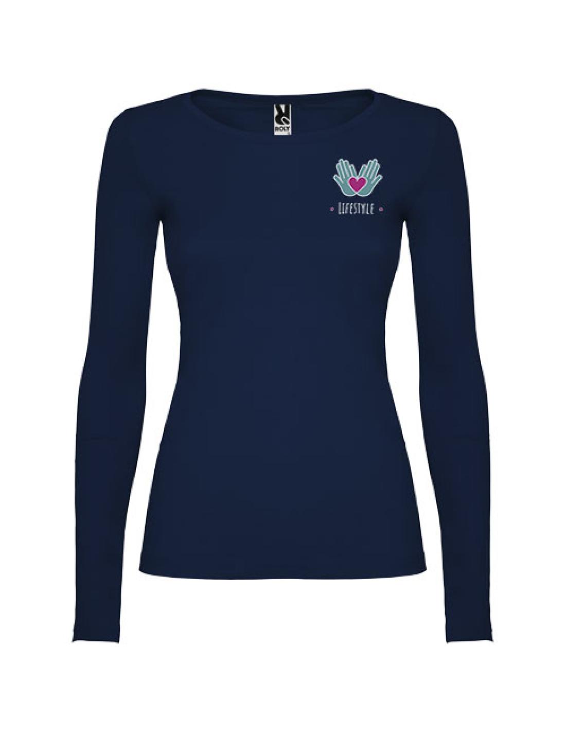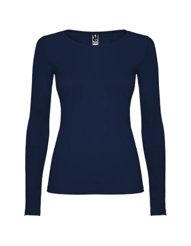 Camiseta semientallada, de manga larga y cuello acabado con ribete fino. Sin puños. Costuras laterales. Etiqueta extraíble.
