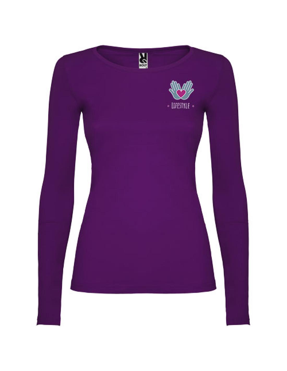Camiseta semientallada, de manga larga y cuello acabado con ribete fino. Sin puños. Costuras laterales. Etiqueta extraíble.