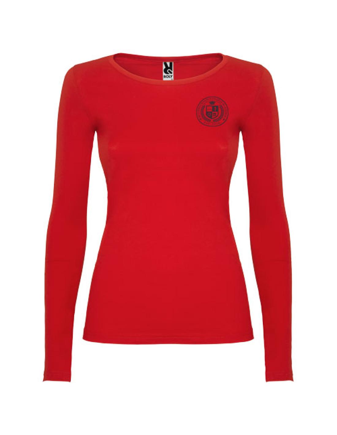 Camiseta semientallada, de manga larga y cuello acabado con ribete fino. Sin puños. Costuras laterales. Etiqueta extraíble.