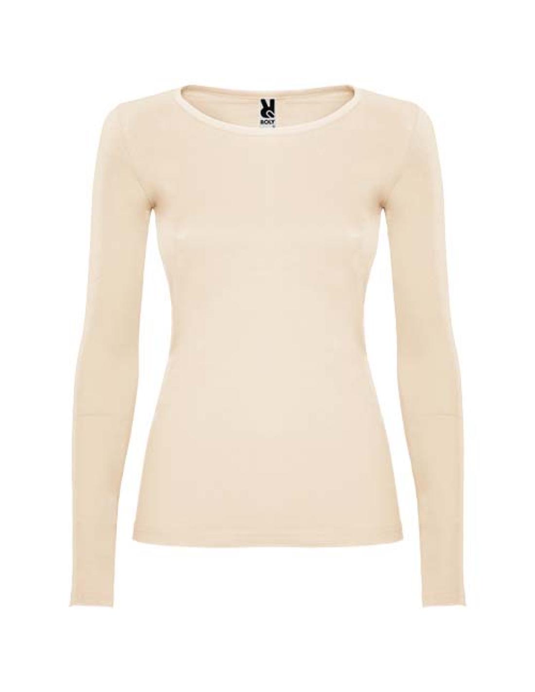 Camiseta semientallada, de manga larga y cuello acabado con ribete fino. Sin puños. Costuras laterales. Etiqueta extraíble.