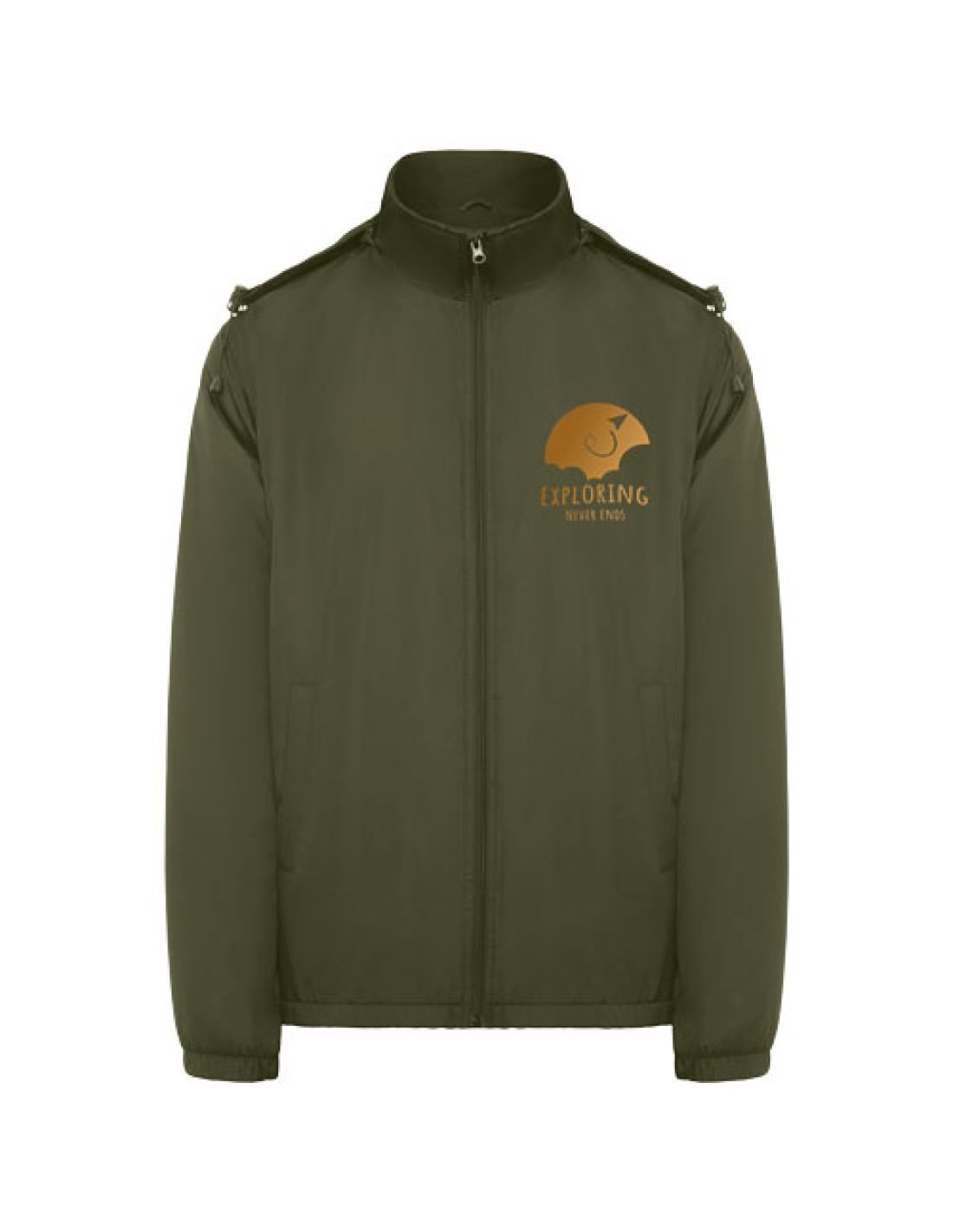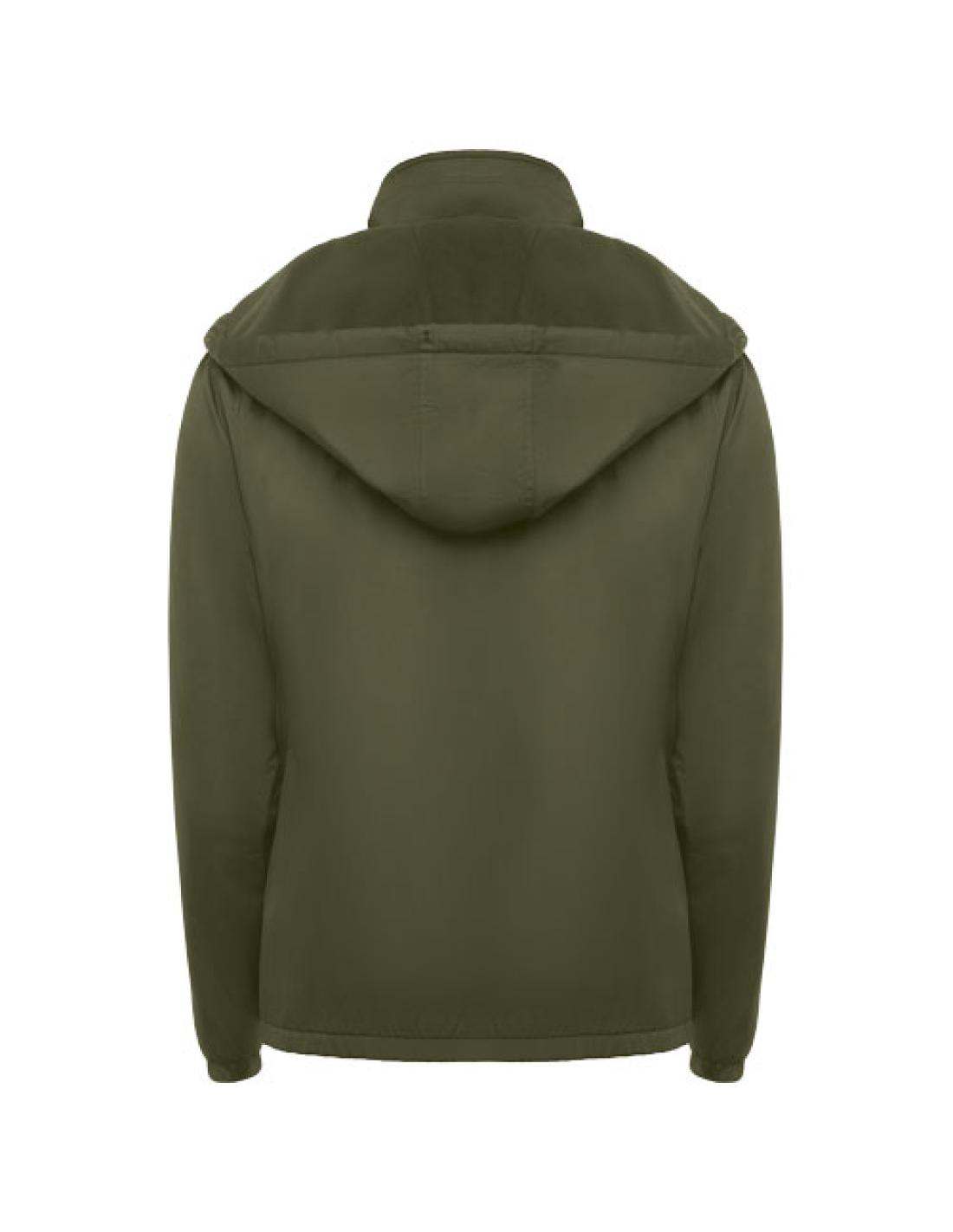 Chaqueta ligera repelente al agua. Cuello alto y capucha plegable con ajustadores. Forro interior micropolar. Cremallera frontal y protector de barbilla. Puños elásticos. Dos bolsillos laterales con cremallera. Bolsillo interior en pecho izquierdo. Etiqueta extraíble. Resistente al agua. A prueba de viento. El modelo masculino mide 184 cms y lleva la talla L, y la modelo femenina mide 174 cms y lleva la talla S.