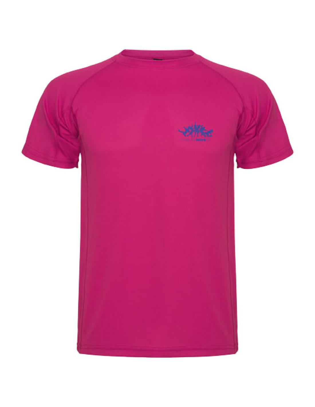 Camiseta técnica de manga corta ranglán. Cuello redondo con cubrecosturas. Aberturas laterales con remallado a juego. Tejido transpirable de fácil lavado y secado. Etiqueta extraíble. Tejido técnico. Factor de protección ultravioleta.