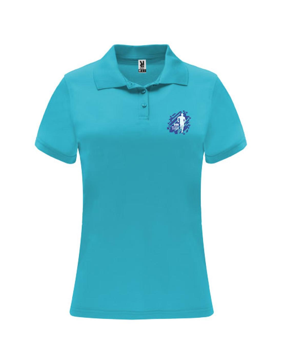 Polo técnico de manga corta para mujer. Cuello tejido con tapeta de tres botones. Corte entallado. Tejido transpirable, de fácil lavado y secado. Etiqueta extraíble. Tejido técnico y transpirable. La modelo mide 173 cms y lleva la talla S.