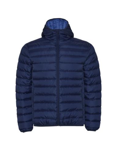 Chaqueta de hombre acolchada con relleno tacto pluma y capucha fija. Cremalleras invertidas con protector de barbilla a juego. Dos bolsillos laterales con cremallera. Ribete elástico a tono en puños, bajos y capucha. Forro interior a contraste. Incluye bolsa de transporte. Prenda ligera y plegable. Resistente al agua. Modelo a prueba de viento.