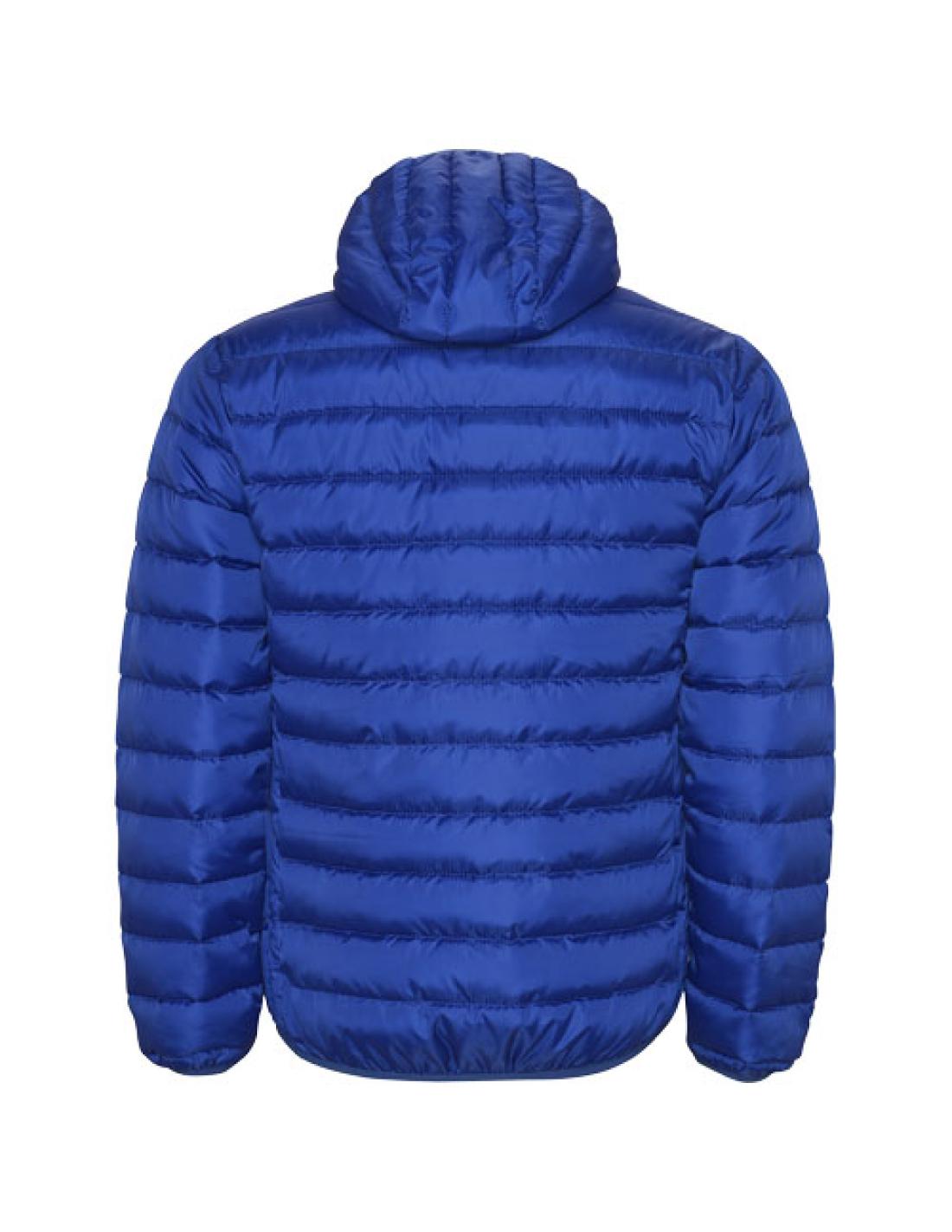 Chaqueta de hombre acolchada con relleno tacto pluma y capucha fija. Cremalleras invertidas con protector de barbilla a juego. Dos bolsillos laterales con cremallera. Ribete elástico a tono en puños, bajos y capucha. Forro interior a contraste. Incluye bolsa de transporte. Prenda ligera y plegable. Resistente al agua. Modelo a prueba de viento.