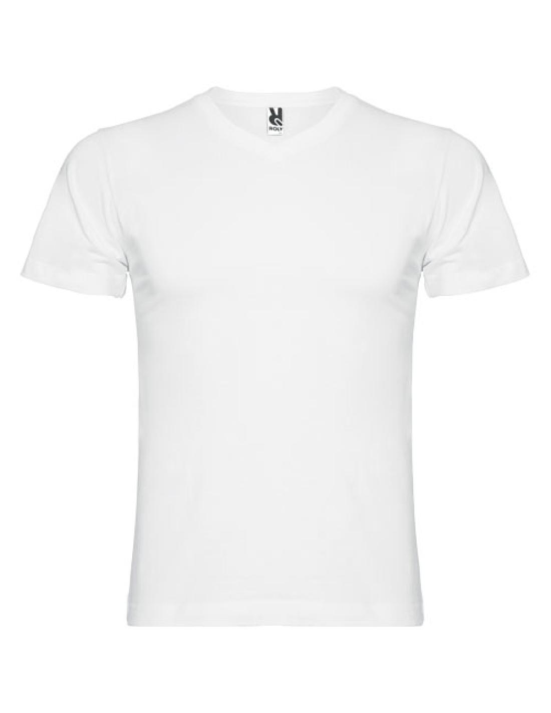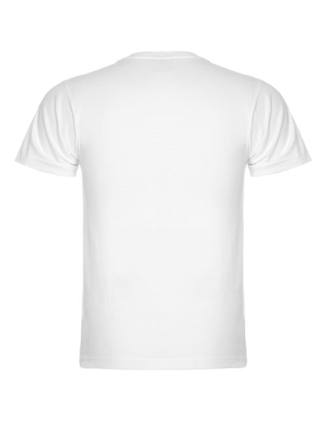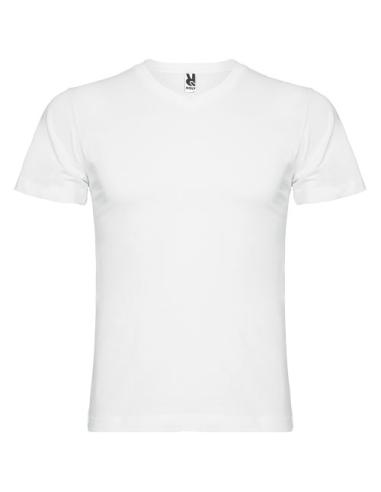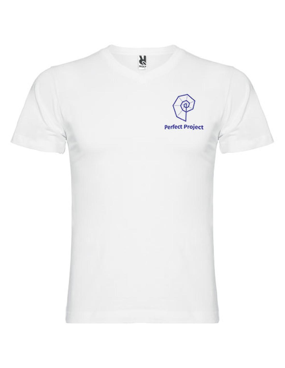 Camiseta de manga corta tubular y cuello en pico de 2 capas. Cubrecosturas reforzado en cuello y hombros. Etiqueta extraíble. El modelo mide 190 cms y lleva la talla L.