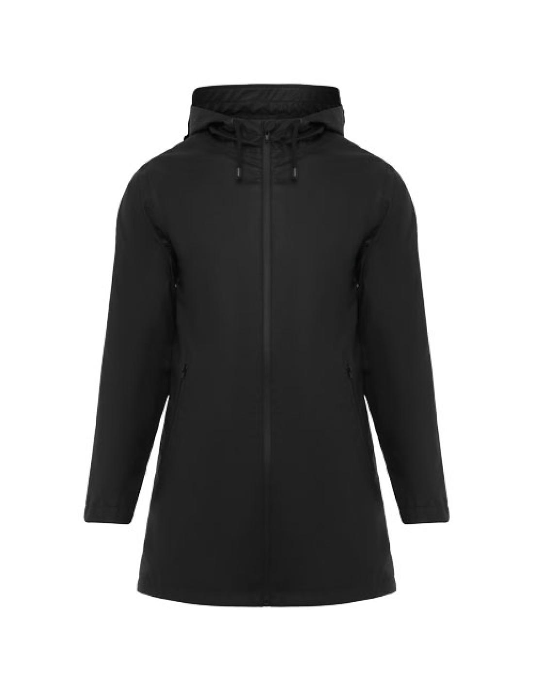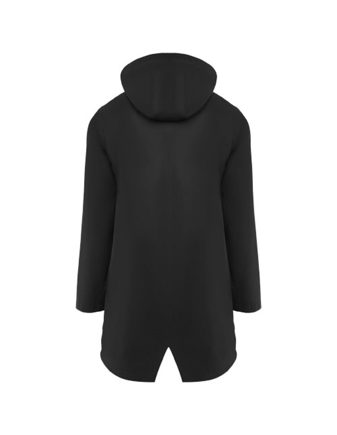 Chubasquero impermeable entallado para mujer. Capucha con visera. Cremalleras y costuras termoselladas. Detalles a contraste en color negro. Dos bolsillos laterales con cremallera. Bajo posterior con abertura. Etiqueta extraíble. Modelo impermeable. La modelo mide 179 cms y lleva la talla S.