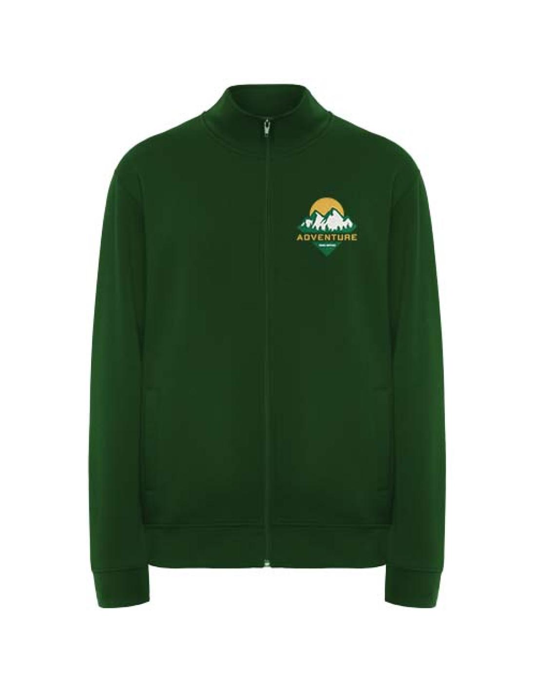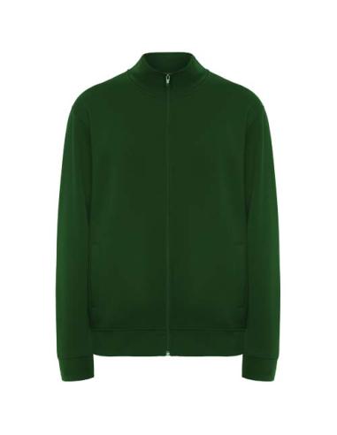 Sudadera de cuello alto y cremallera a juego. Cuello interior con cubrecosturas reforzadas en el mismo tono. Punto canalé 1x1 en puños y cintura. Etiqueta extraíble. El modelo masculino mide 185 cms y lleva una talla L, y la modelo femenina mide 168 cms y lleva una talla S.