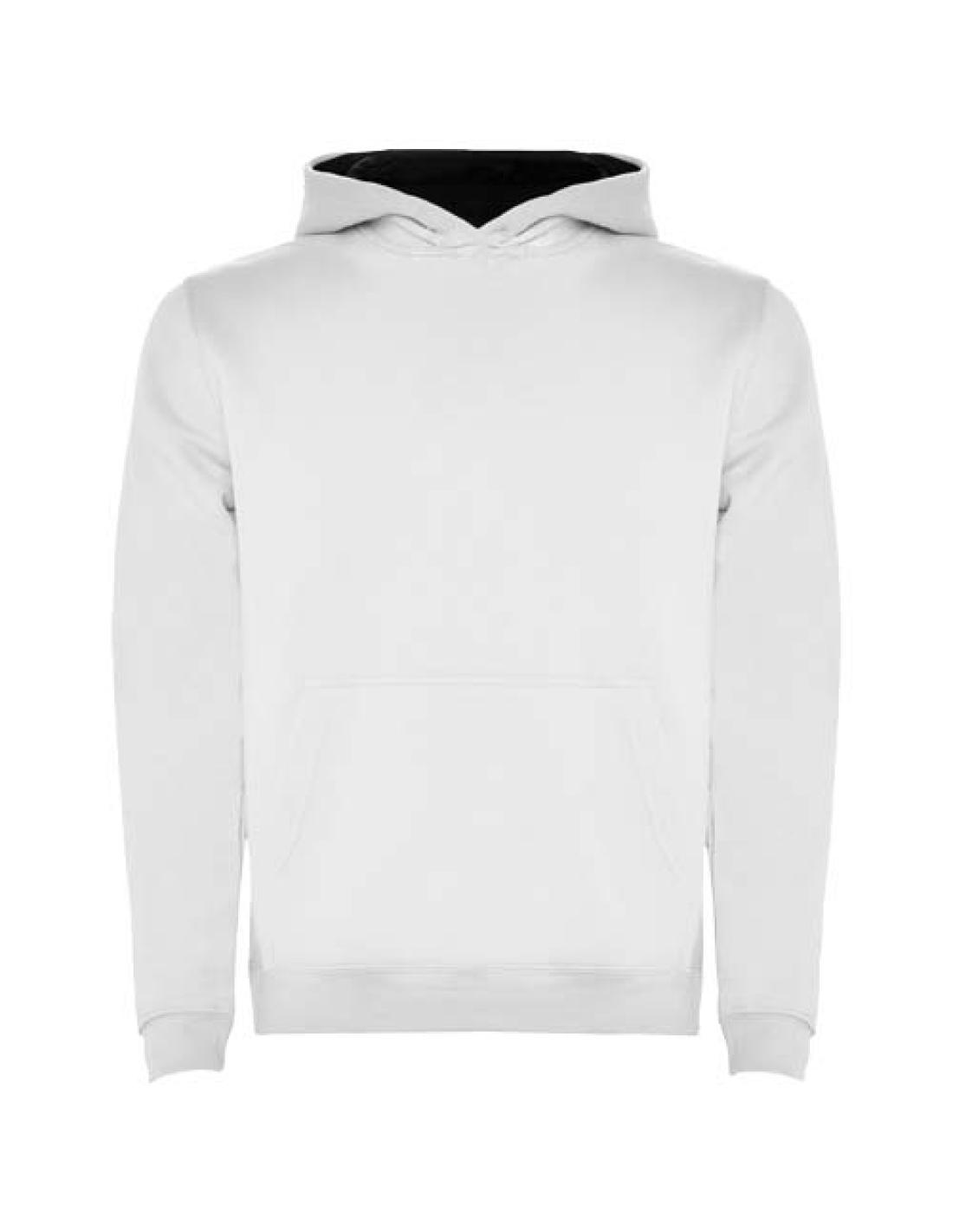 Sudadera con capucha de doble tejido bicolor, cubrecosturas reforzados y bolsillo tipo canguro. Punto canalé con elastano 1x1 en puños y cintura. Etiqueta extraíble. El modelo mide 120 cms y lleva una talla 5/6.