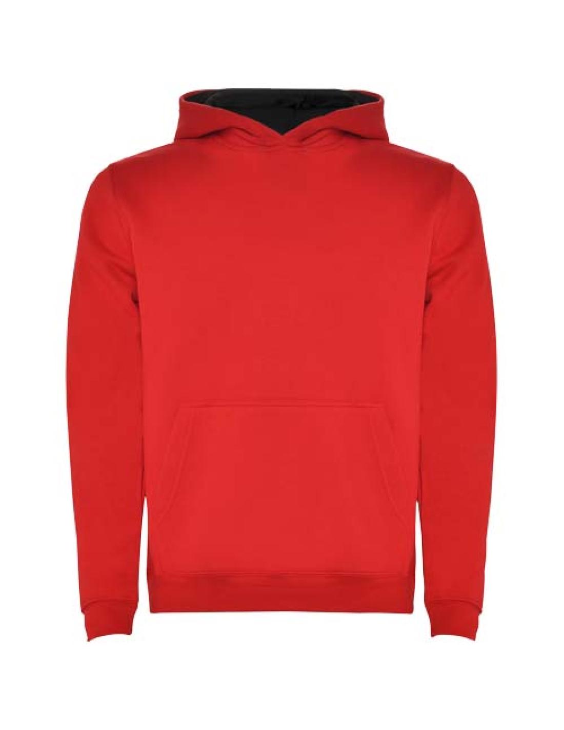 Sudadera con capucha de doble tejido bicolor, cubrecosturas reforzados y bolsillo tipo canguro. Punto canalé con elastano 1x1 en puños y cintura. Etiqueta extraíble. El modelo mide 120 cms y lleva una talla 5/6.
