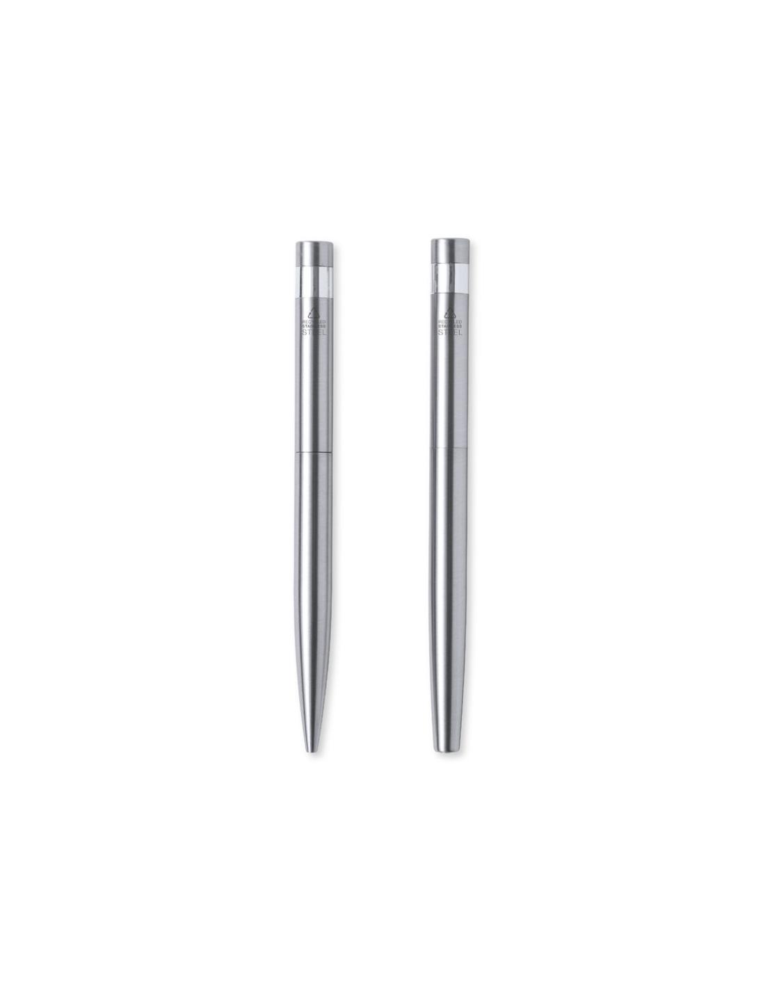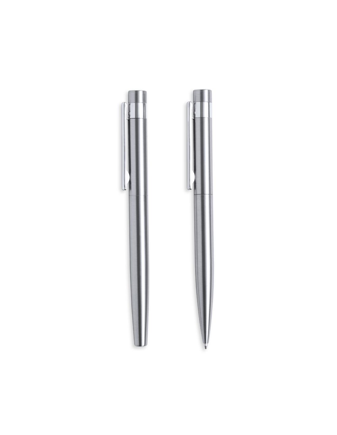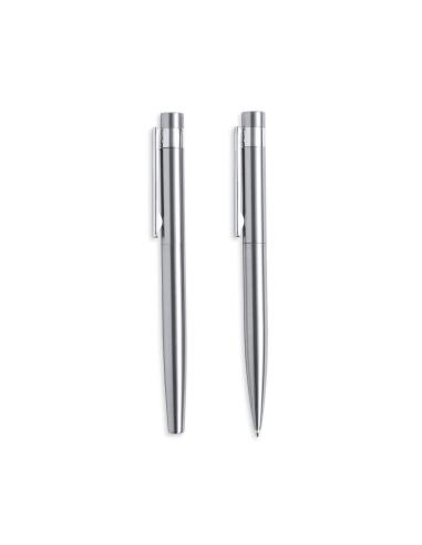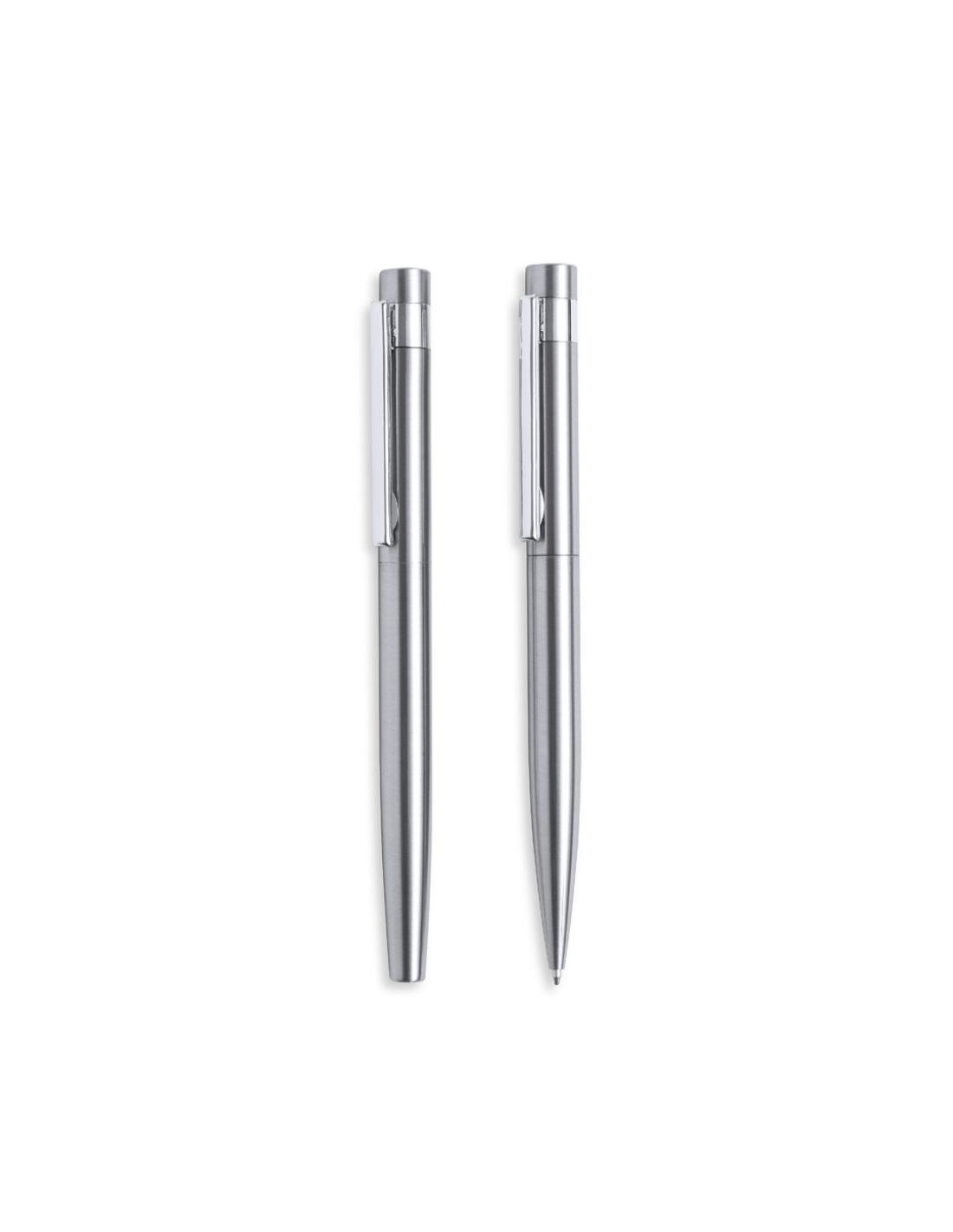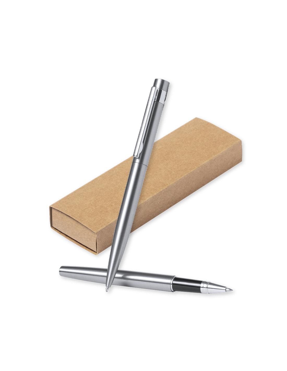 Set eco-friendly de bolígrafo y roller, fabricados en acero inox reciclado. Incluye: Bolígrafo de mecanismo giratorio, con cuerpo en acabado plateado y accesorios en cromado. Clip metálico y distintivo acero inox reciclado en la parte superior del bolígrafo. Cartucho jumbo y tinta azul.Roller con cuerpo en color plateado y accesorios en cromado. Clip metálico y distintivo acero inox reciclado en la parte superior de la capucha. Cartucho jumbo y tinta azul.Set presentado en estuche individual de diseño kraft con funda a juego.El acero es uno de los materiales más demandados y que puede encontrarse casi en todas partes, desde productos de uso diario a grandes construcciones. Con innumerables propiedades, entre las que cabe destacar la durabilidad y su alto grado de reutilización, convirtiéndolo en una alternativa...