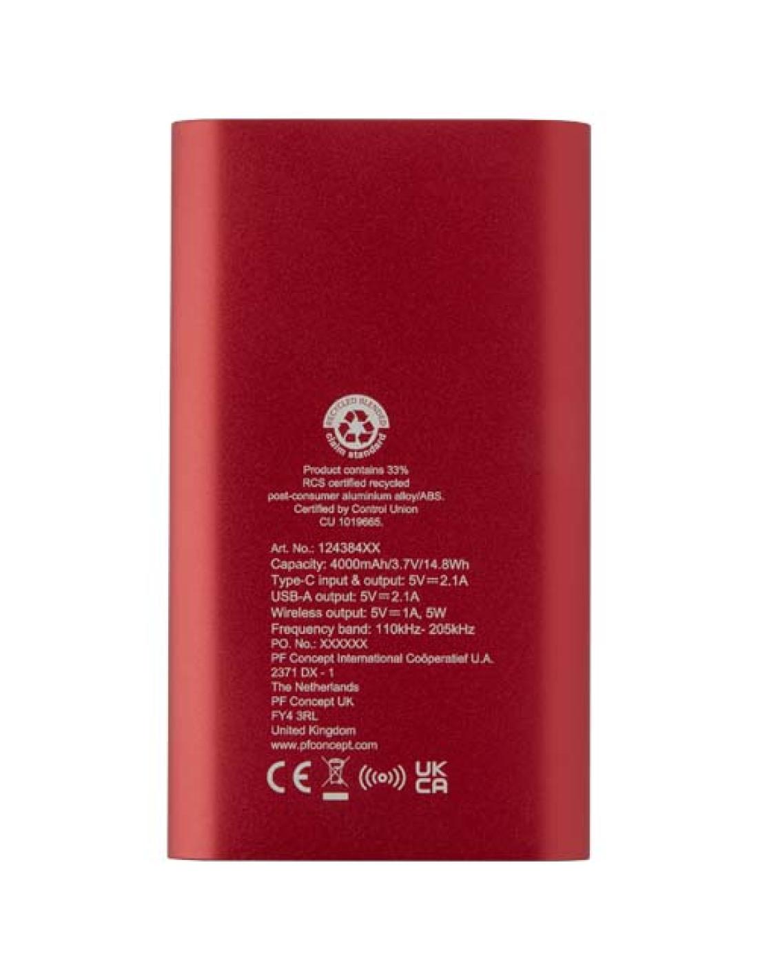 Batería externa inalámbrica tipo C de aluminio reciclado de 4000 mAh N12483421
