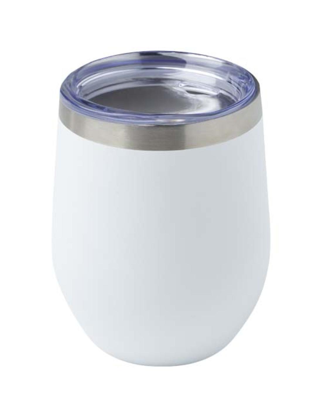 La taza "Corzo" está fabricada con acero inoxidable con certificación RCS y tiene una estructura de doble pared con aislamiento de cobre para mantenet las bebidas calientes durante 6 horas o frías durante 24 horas. La estructura evita la condensación en el exterior del vaso. Tapa de botón de presión para beber fácilmente. Cuenta con un recubrimiento de polvo en aerosol en el cuerpo exterior. Amplia abertura para rellenar y verter cómodamente. Capacidad de 350 ml. Se presenta en una caja de regalo de cartón reciclado.