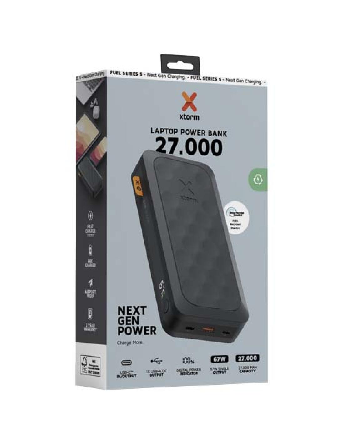 La batería externa de alta capacidad "Fuel Series" de 27 000 mAh cuenta con 2 puertos USB-C PD ultrarrápidos y un puerto USB-A. Esto permite cargar rápidamente varios dispositivos móviles e incluso ordenadores portátiles. El exclusivo diseño de la batería externa le confiere un aspecto impactante. Salida: 1 USB-C de 67 W de suministro de energía, 1 USB-C de 27 W de suministro de energía y 1 USB-A de 22,5 W. Se entrega con un cable USB-C a USB-C y un manual de usuario.
