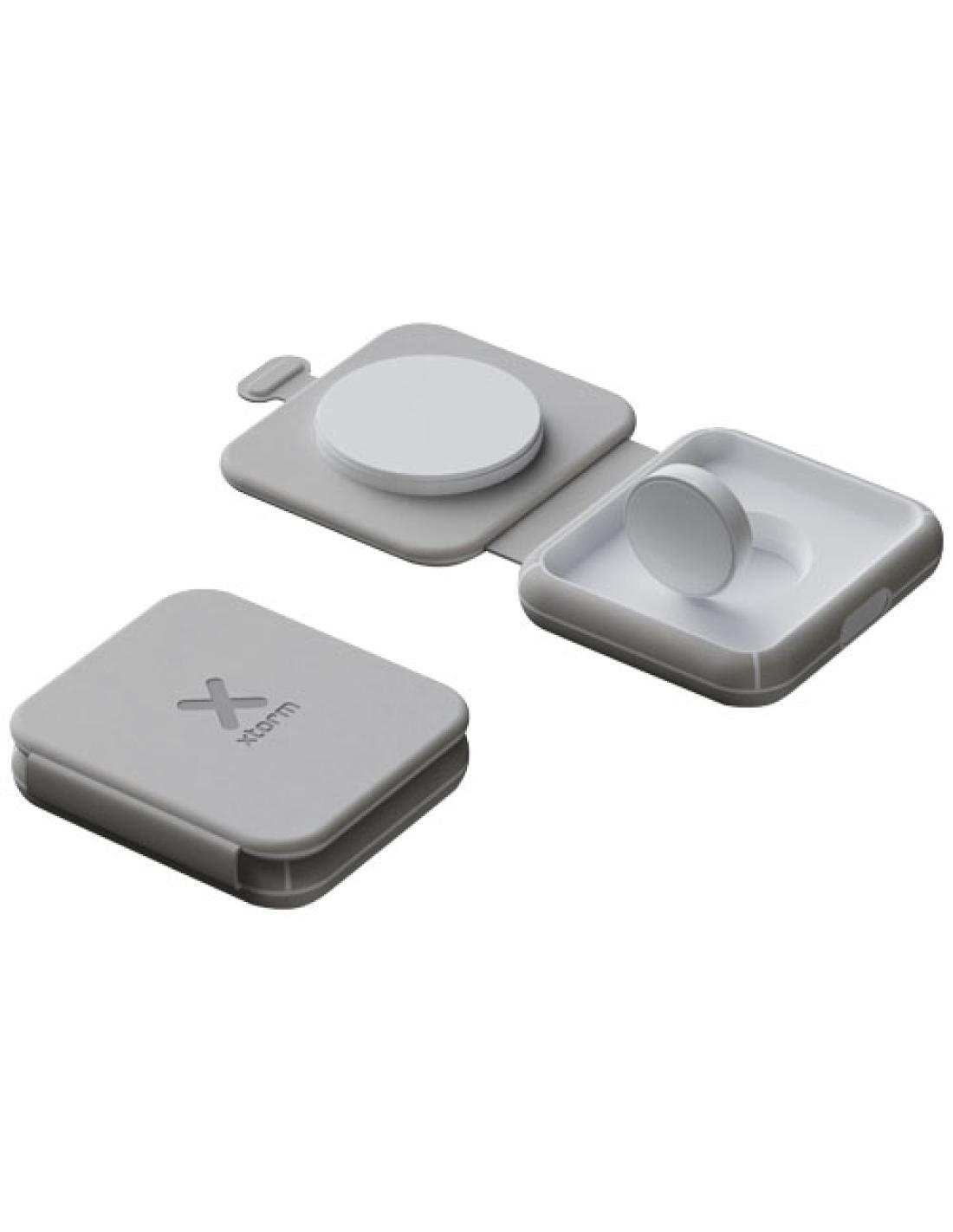 Con este cargador magnético inalámbrico de viaje compacto, plegable y elegante podrás cargar tu iPhone y tu Apple Watch al mismo tiempo. Ideal para cargar en casa, en la oficina o durante un viaje nocturno. Incluye 1 base de carga inalámbrica magnética (15 W) y 1 cargador para iWatch (3 W). Entrada: Suministro de energía USB-C de 27 W. Se entrega con un cable de alimentación USB-C de 1 metro y un manual de usuario.