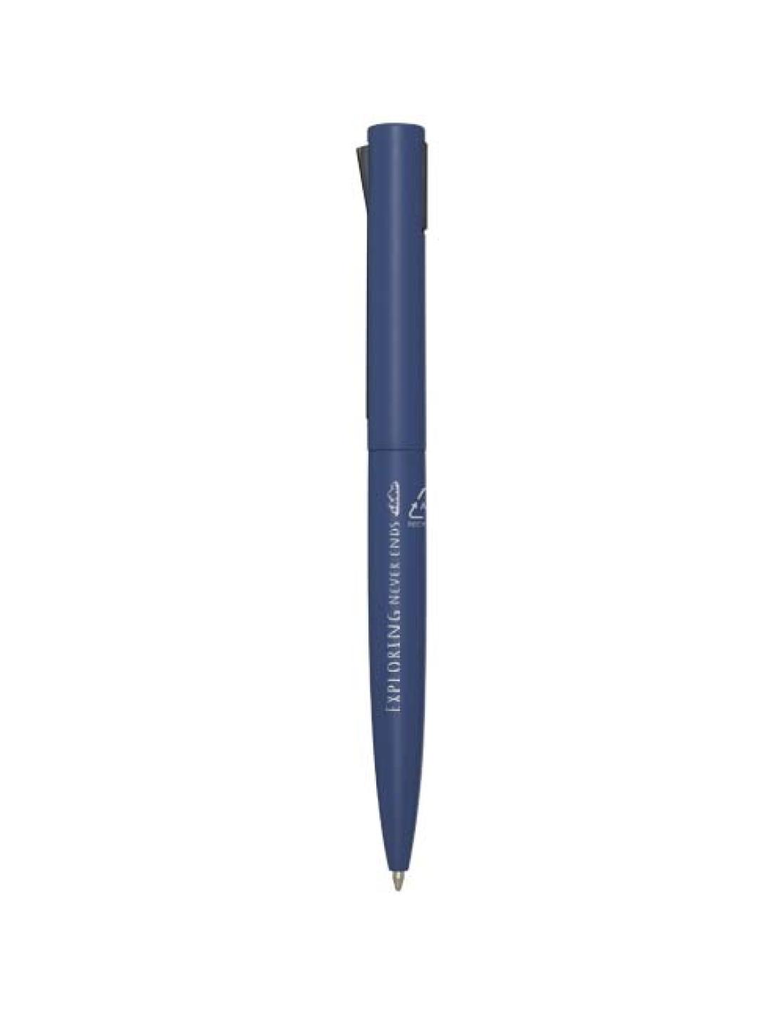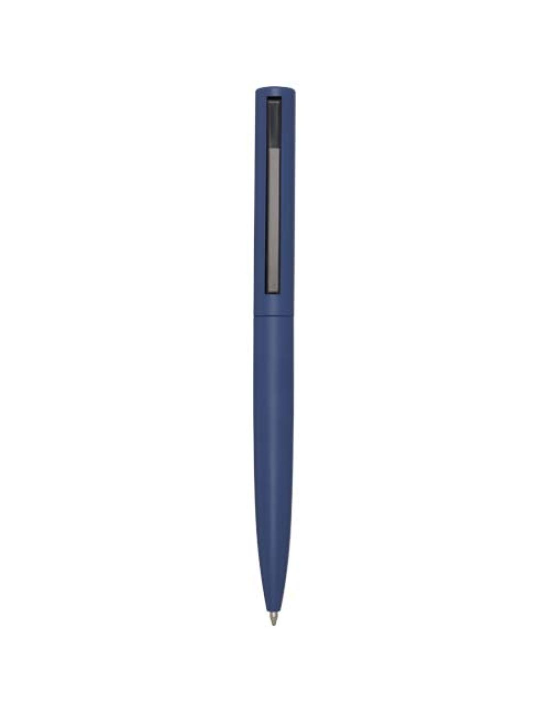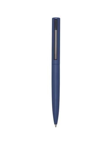 Bolígrafo con la parte superior del cuerpo de plástico reciclado y la parte inferior de aluminio reciclado. El clip es de hierro. Color de la tinta: Negro. Longitud de escritura: 1000 metros. Tamaño del plumín: 1,0 mm.