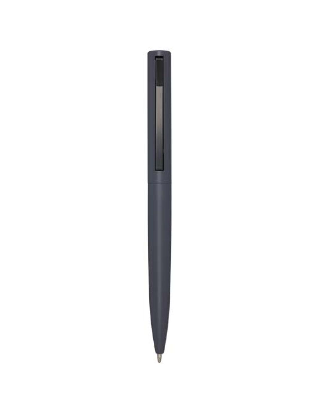 Bolígrafo con la parte superior del cuerpo de plástico reciclado y la parte inferior de aluminio reciclado. El clip es de hierro. Color de la tinta: Negro. Longitud de escritura: 1000 metros. Tamaño del plumín: 1,0 mm.