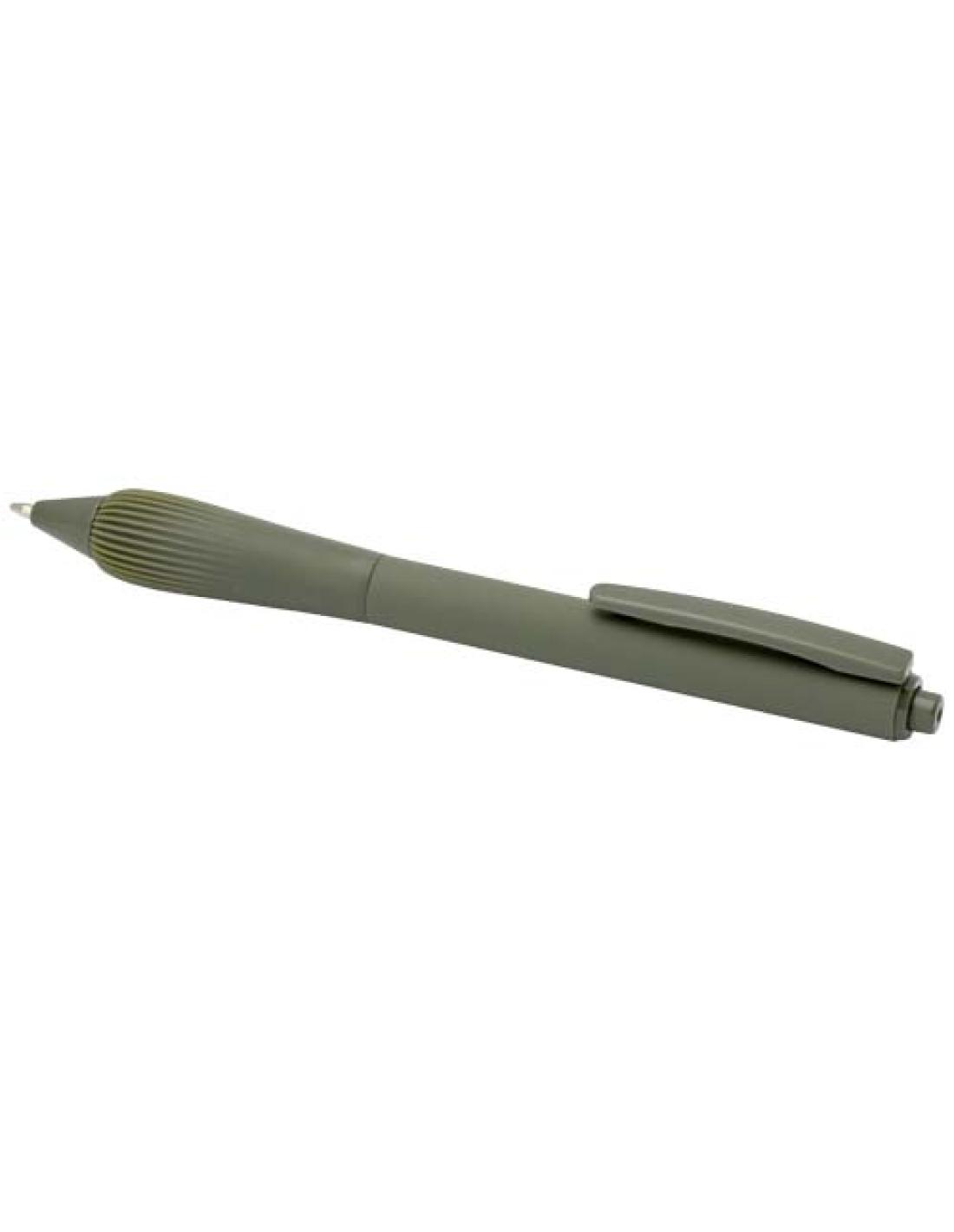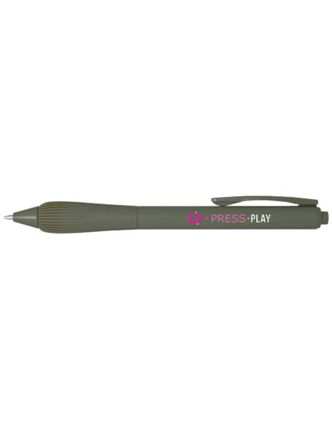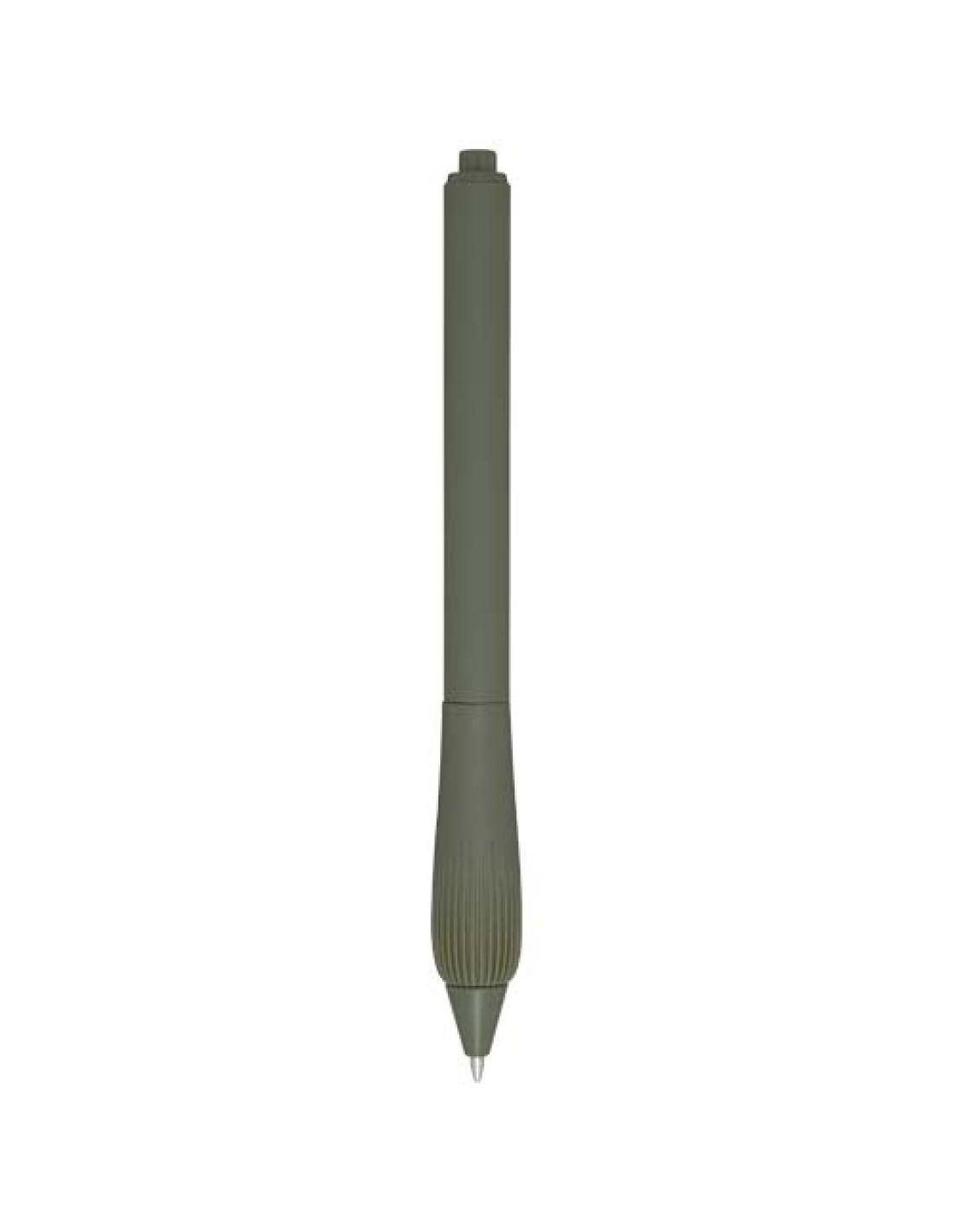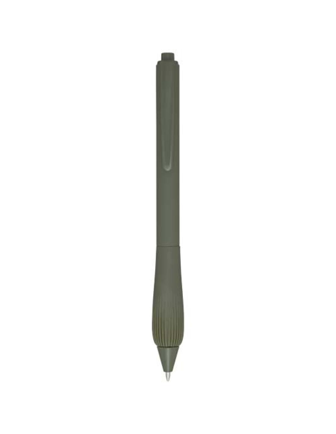 Bolígrafo de plástico reciclado con cuerpo recubierto de goma y empuñadura de TPR. Color de la tinta: Azul. Longitud de escritura: 1000 metros. Tamaño del plumín: 1,0 mm.