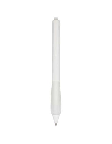 Bolígrafo de plástico reciclado con cuerpo recubierto de goma y empuñadura de TPR. Color de la tinta: Azul. Longitud de escritura: 1000 metros. Tamaño del plumín: 1,0 mm.