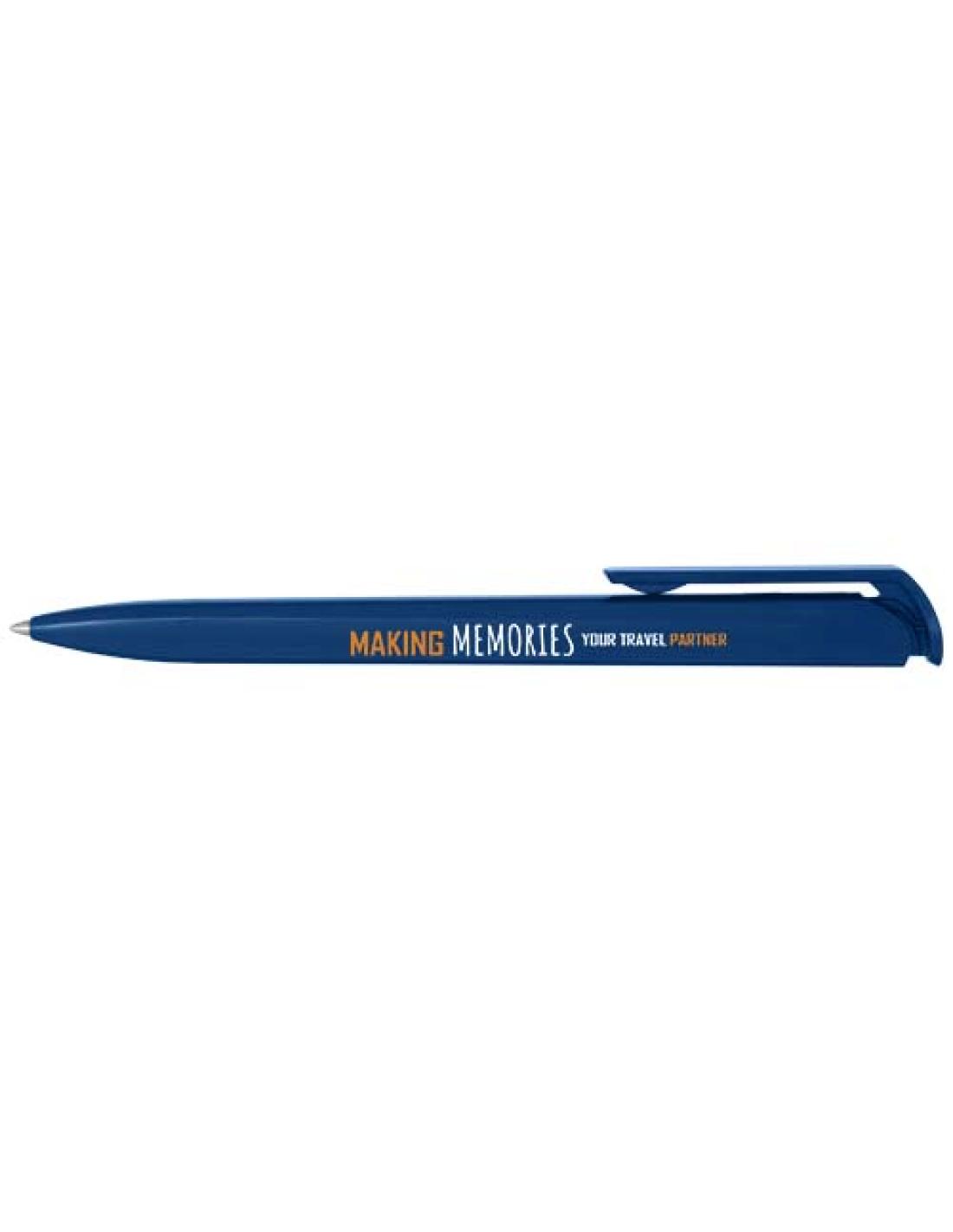 Bolígrafo con cuerpo y clip de plástico reciclado. Color de la tinta: Azul. Longitud de escritura: 3000 metros. Tamaño del plumín: 1,00 mm. Fabricado en Alemania.