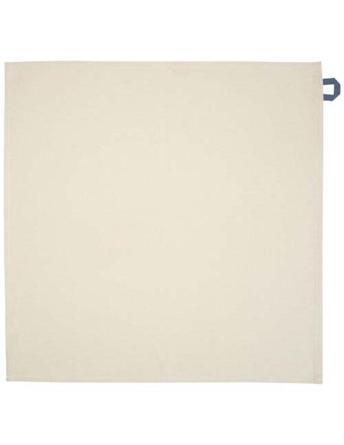 Paño de cocina confeccionado en algodón reciclado 100 % de 200 g/m² con certificado GRS y un distintivo lazo en contraste. Tamaño del paño: 50 x 50 cm.