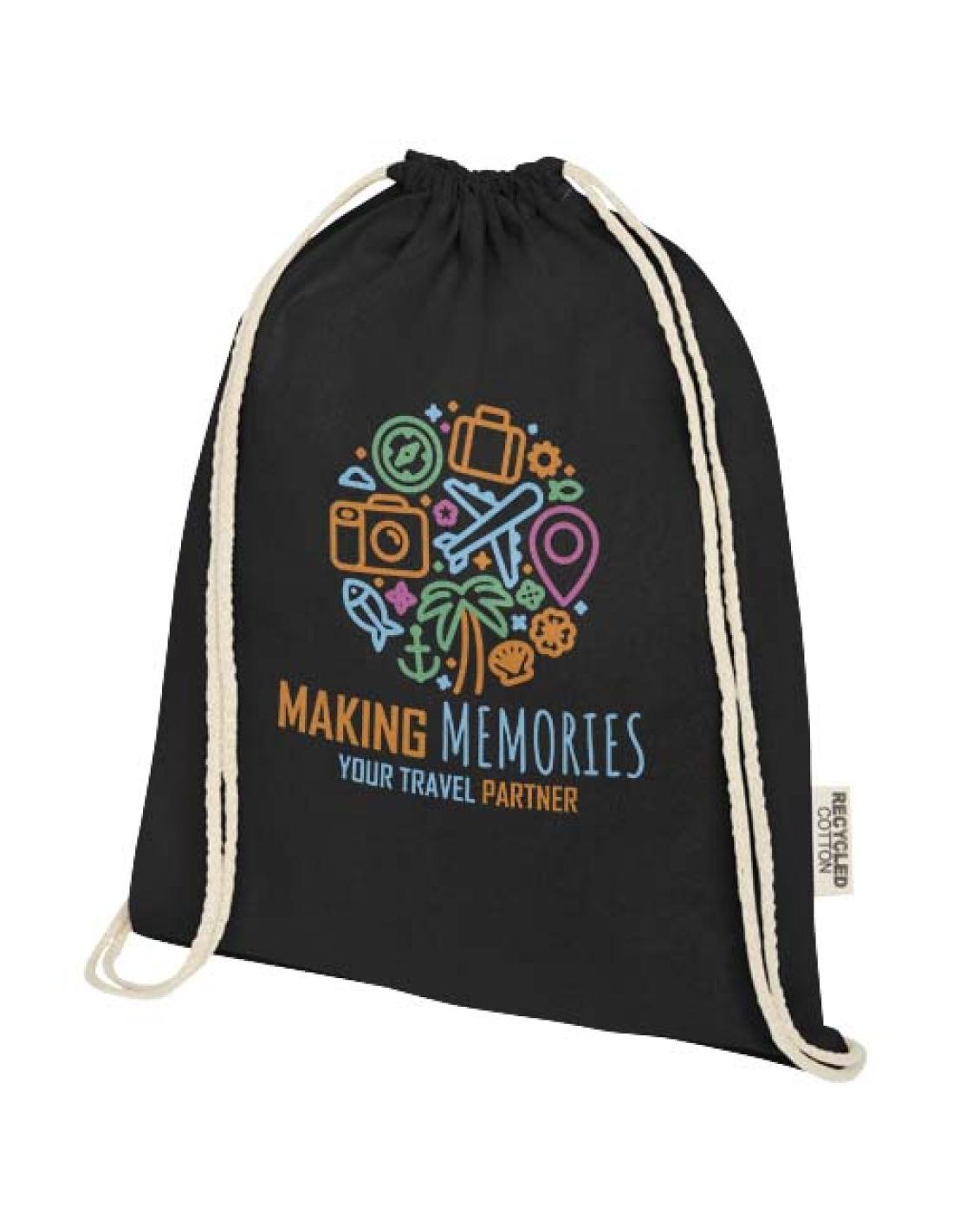 La bolsa con cordón fabricada en algodón 100 % reciclado con certificación GRS "Oregon" resulta ideal para entregar como regalo para promocionar tu marca o campaña de marketing. Esta bolsa ligera es económica y fácil de llevar a la espalda o al hombro, y dispone de espacio suficiente para añadir un logotipo u otros mensajes. El cordón facilita su apertura y cierre, y el material de algodón de 140 g/m² es resistente y duradero. Gran compartimento principal con cierre de cuerda de algodón. Resistencia para hasta 5 kg de peso.