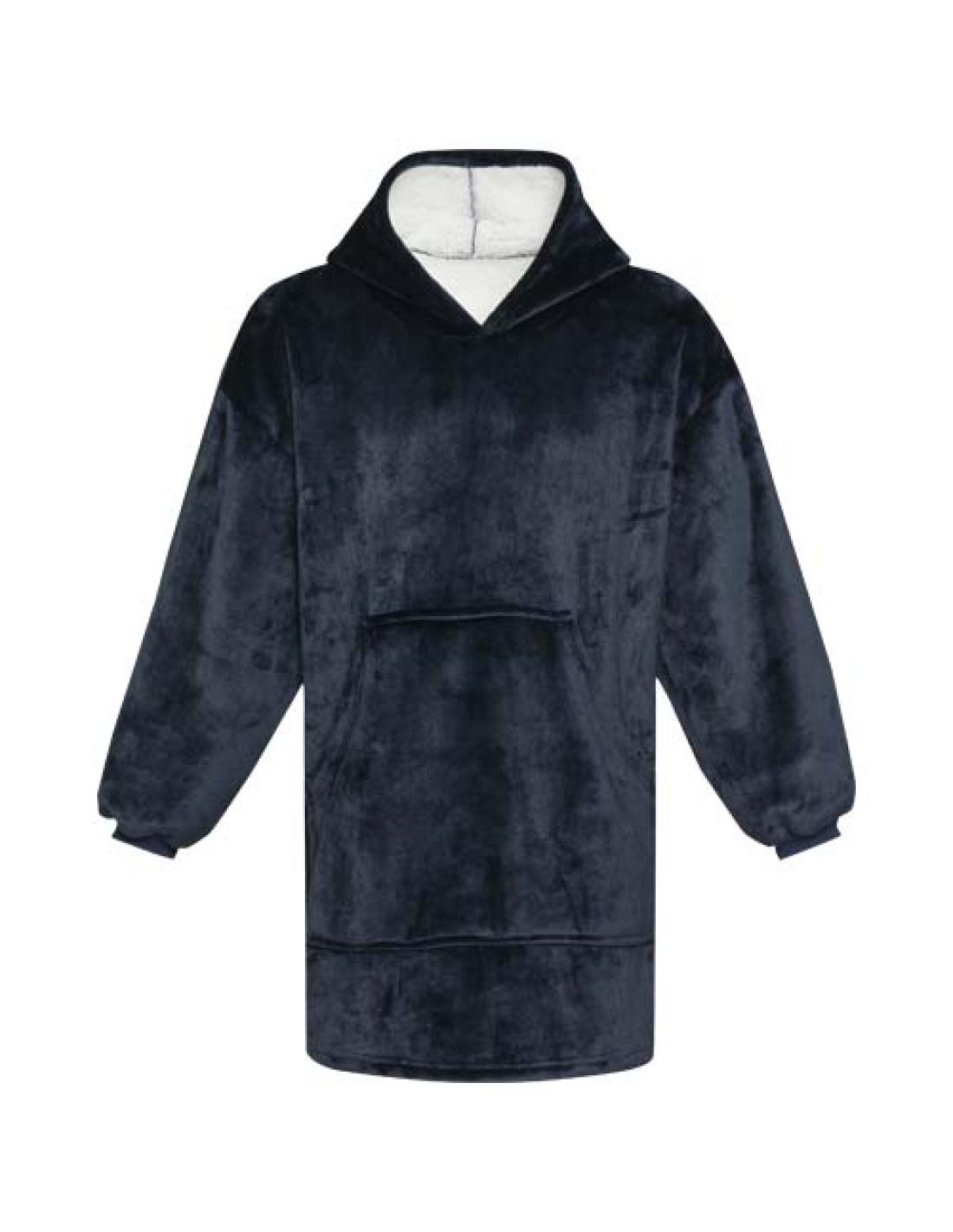 La manta con capucha "Denali" está hecha de franela 100 % poliéster con certificación GRS en el exterior y forrada de tejido sherpa 100 % poliéster en color blanco hueso con certificación GRS en el interior. Su diseño de gran tamaño garantiza la máxima comodidad. Resulta perfecta para descansar en el sofá o acampar bajo las estrellas. Con una capucha de diseño elegante y un práctico bolsillo delantero, esta manta combina calidez y estilo.