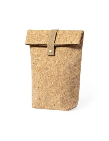 Bolsa térmica de línea nature fabricada en corcho, para así fomentar el uso de materias primas naturales y contribuir a la sostenibilidad del planeta. Compartimento principal con tira de algodón y cierre de corchete, con interior isotermo de aluminio.