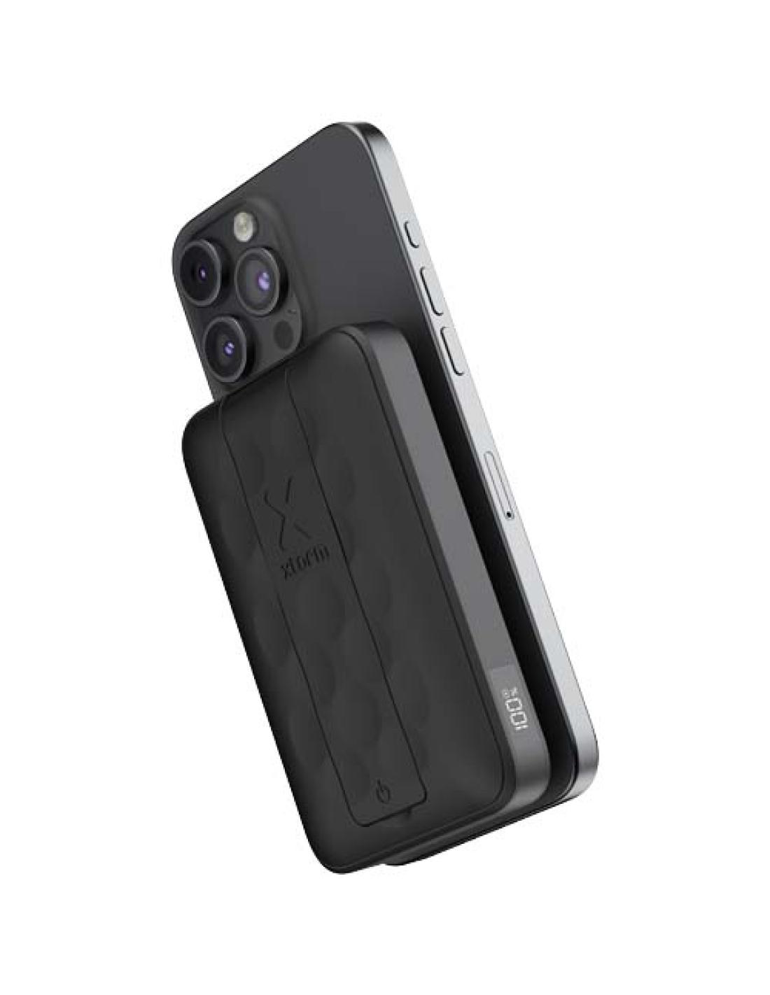 Batería externa magnética inalámbrica de 15 W y 10 000 mAh con diseño compacto y soporte plegable integrado. Cargar con esta batería externa es fácil. Basta con encajarla en la parte posterior del iPhone (a partir del iPhone 12) y empezará a cargarse de inmediato. La batería externa también es compatible con otros dispositivos que admitan carga inalámbrica.