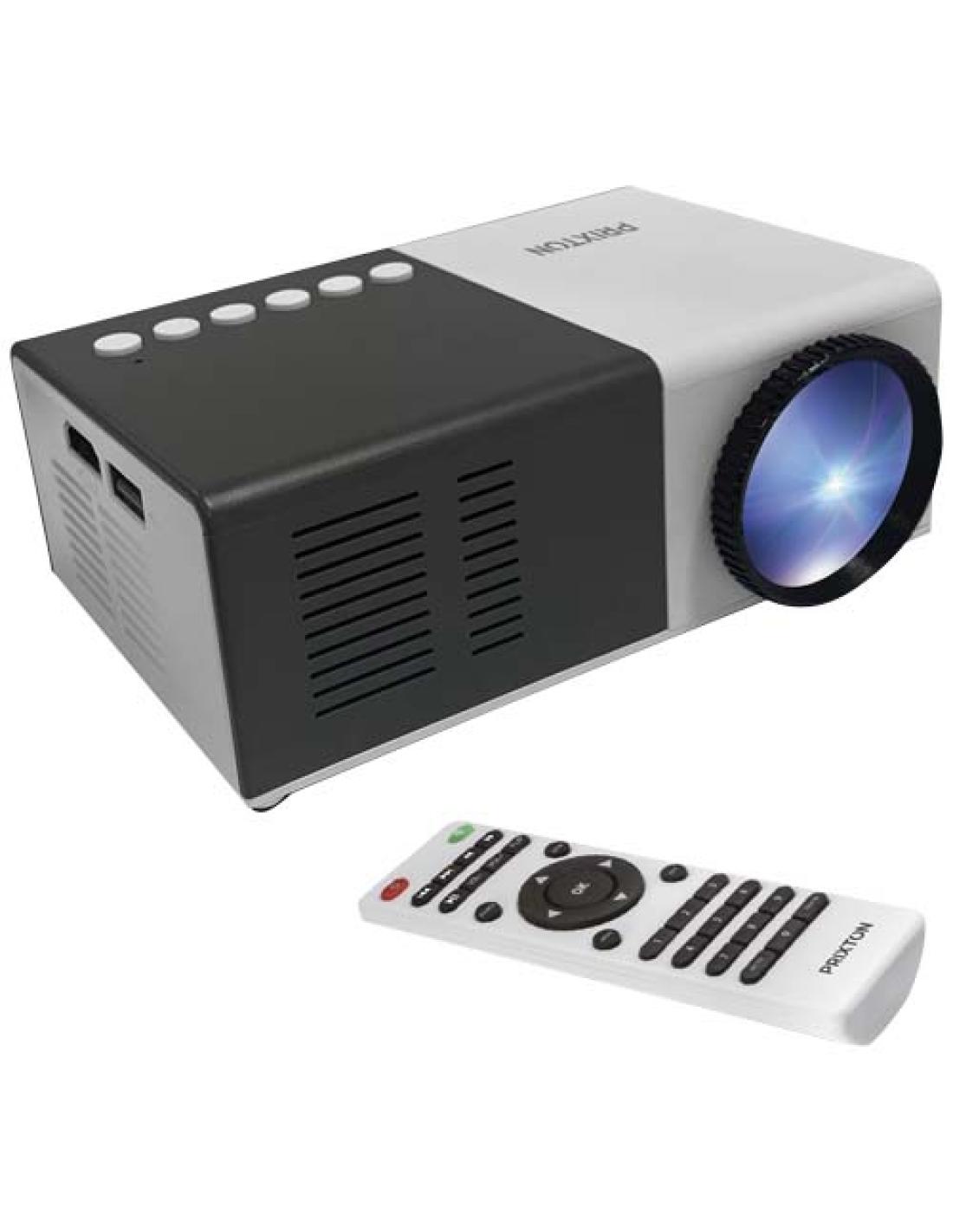 El miniproyector "Cinema" reproduce vídeos con gran calidad de imagen y es compatible con Full HD 1080p, así como 1080i, 720p, 576i, 480p y 480i a través de HDMI. Incluye un mando a distancia para mayor comodidad y dos altavoces estéreo. Además de vídeo, también puede proyectar audio, fotos y texto.