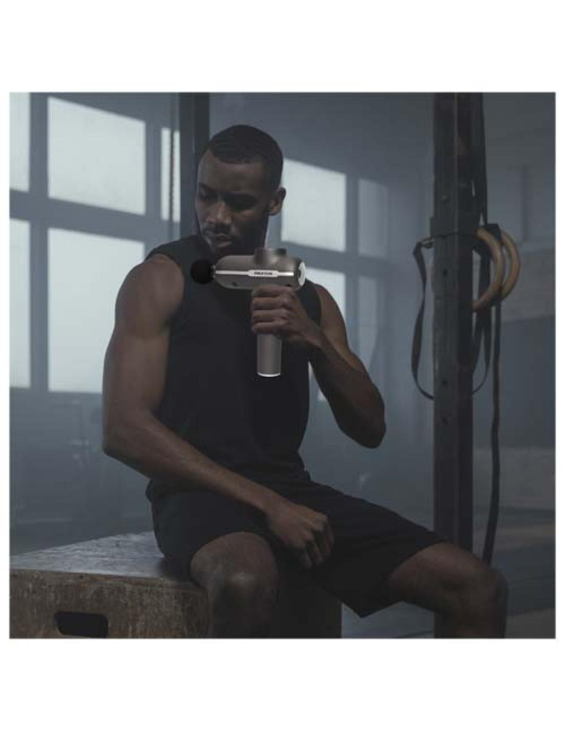 Pistola de masaje inalámbrica que puede utilizarse tanto para fitness como para fisioterapia. Sirve para calentar antes del ejercicio, recuperarse de entrenamientos de baja intensidad, aliviar el dolor después de entrenamientos de alta intensidad o prevenir lesiones. Incluye 4 cabezales para hacer diferentes masajes en cada parte del cuerpo. Además, dispone de 5 ajustes de velocidad diferentes para adaptarse a todas las necesidades. Potencia del motor: 50 W. Resistencia: 2700 rpm. Batería 2000 mAh / 12 V. Tiempo de carga: 4-5 horas. Autonomía: 4-5 horas. Nivel de ruido