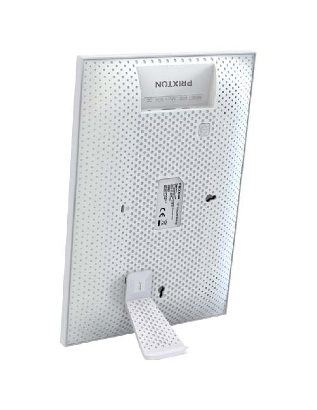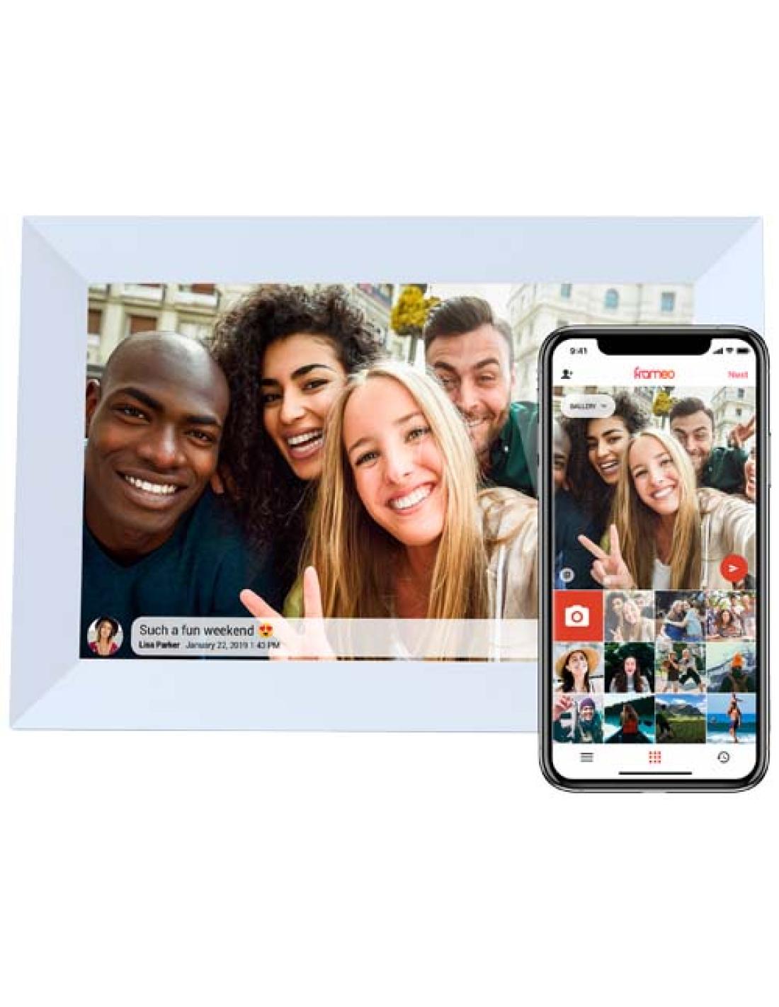 El marco de fotos digital "Prado" recibe fotos y vídeos enviados a través de teléfonos móviles con la aplicación "Frameo". Puedes añadir mensajes a la foto cuando se transfiere del dispositivo al marco. Permite importar fotos desde una tarjeta micro-SD o USB. Tiene velocidad ajustable y diferentes modos de visualización de imágenes: presentación de diapositivas, vista previa, zoom y función giratoria. Además, tiene dos orificios para colgarlo en la pared. Pantalla IPS de 10" con resolución de 1280 x 800 (admite vídeo Full HD). 1 GB de RAM/16 GB de memoria interna. Dos altavoces de 2 W. Aplicación "Frameo" preinstalada. Entradas: Mini USB OTG, tarjeta SD/MMC/MS.