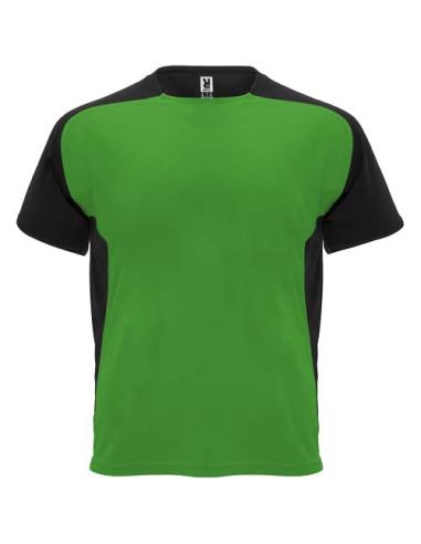 Tejido técnico y transpirable. Cuello redondo con costuras cubiertas a juego. Mangas raglán y paneles laterales en contraste. Etiqueta extraíble.