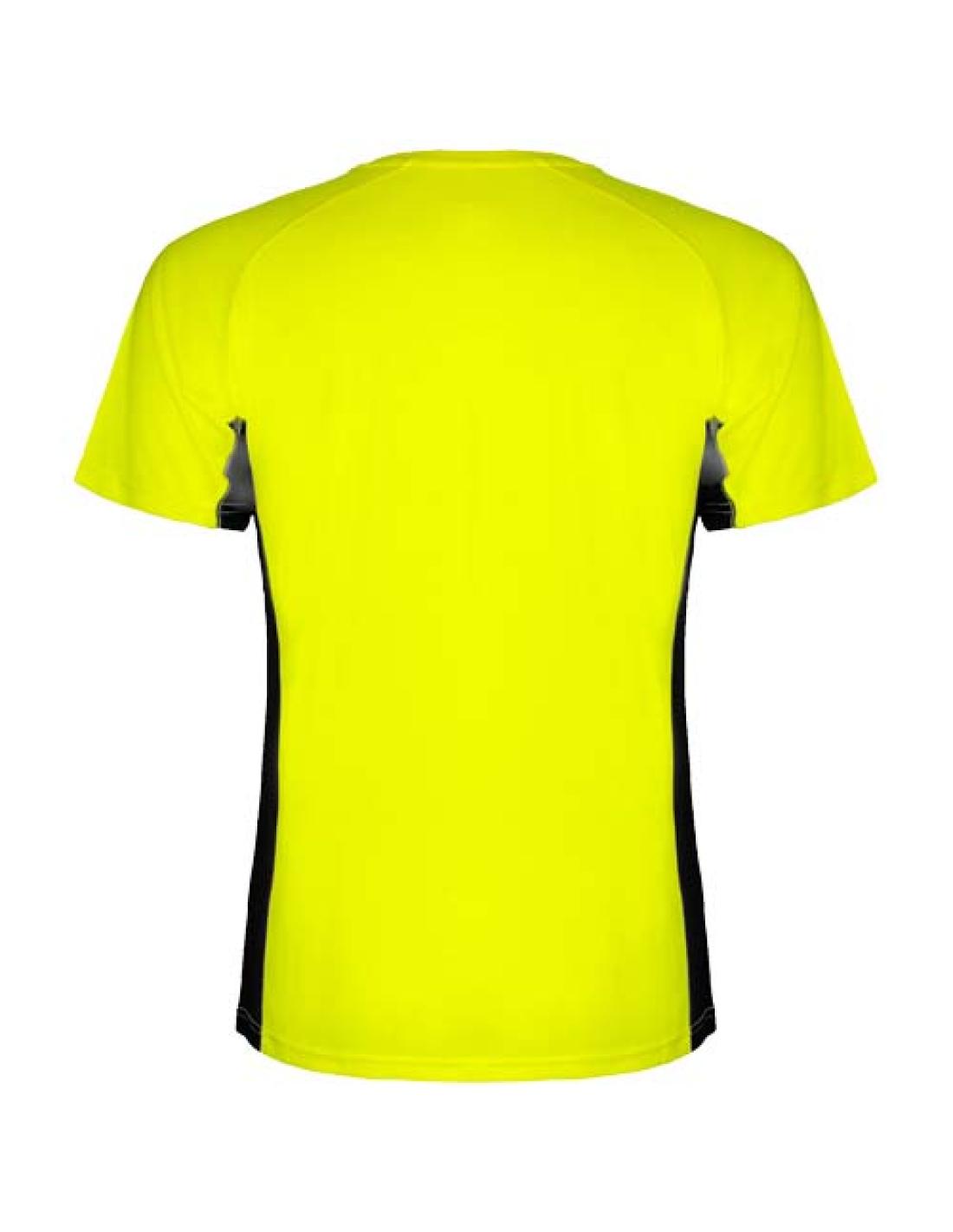 Tejido técnico y transpirable. Una combinación de dos tejidos de poliéster: tejido principal en ojo de perdiz, paneles laterales y manga interior en tejido microperforado. Cuello redondo con costuras interiores cubiertas y reforzadas. Etiqueta extraíble.
