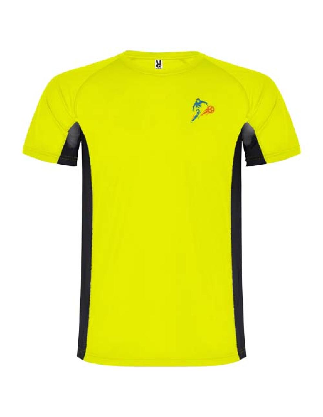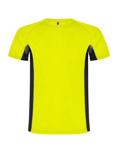 Tejido técnico y transpirable. Una combinación de dos tejidos de poliéster: tejido principal en ojo de perdiz, paneles laterales y manga interior en tejido microperforado. Cuello redondo con costuras interiores cubiertas y reforzadas. Etiqueta extraíble.