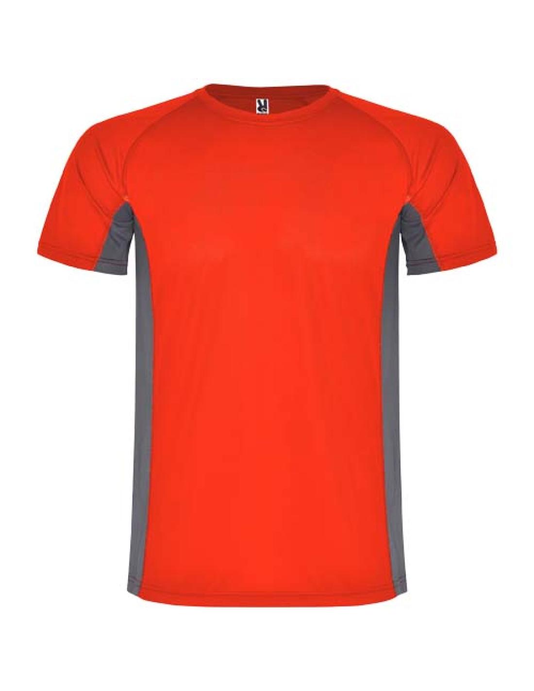 Tejido técnico y transpirable. Una combinación de dos tejidos de poliéster: tejido principal en ojo de perdiz, paneles laterales y manga interior en tejido microperforado. Cuello redondo con costuras interiores cubiertas y reforzadas. Etiqueta extraíble.