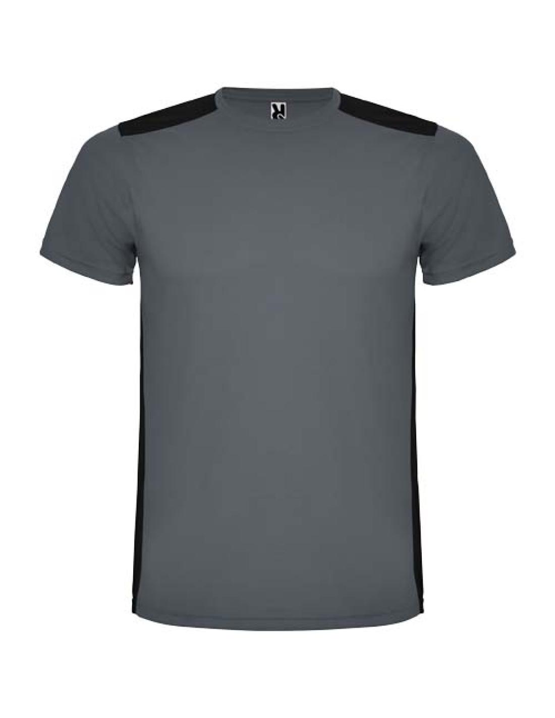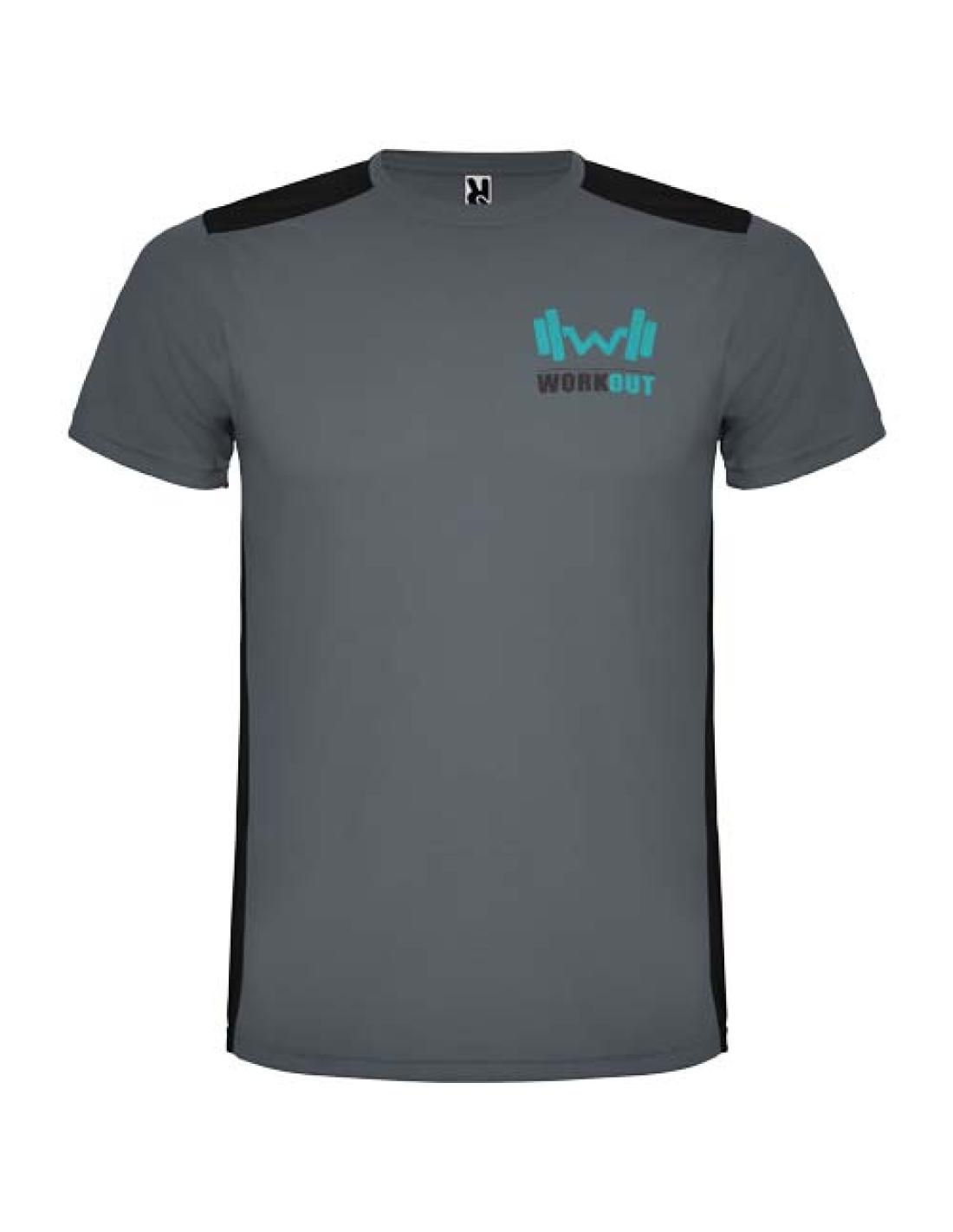 Tejido técnico y transpirable de fácil secado. Cuello redondo. Combinación de dos tejidos de poliéster en la espalda y los hombros. Tejido ojo de perdiz en la parte delantera y tejido de malla 3D transpirable en la parte trasera. Tejido preparado para absorber la humedad. Pespunte decorativo en zigzag en los costados y los hombros. Patrón trasero ligeramente más largo. Etiqueta extraíble.