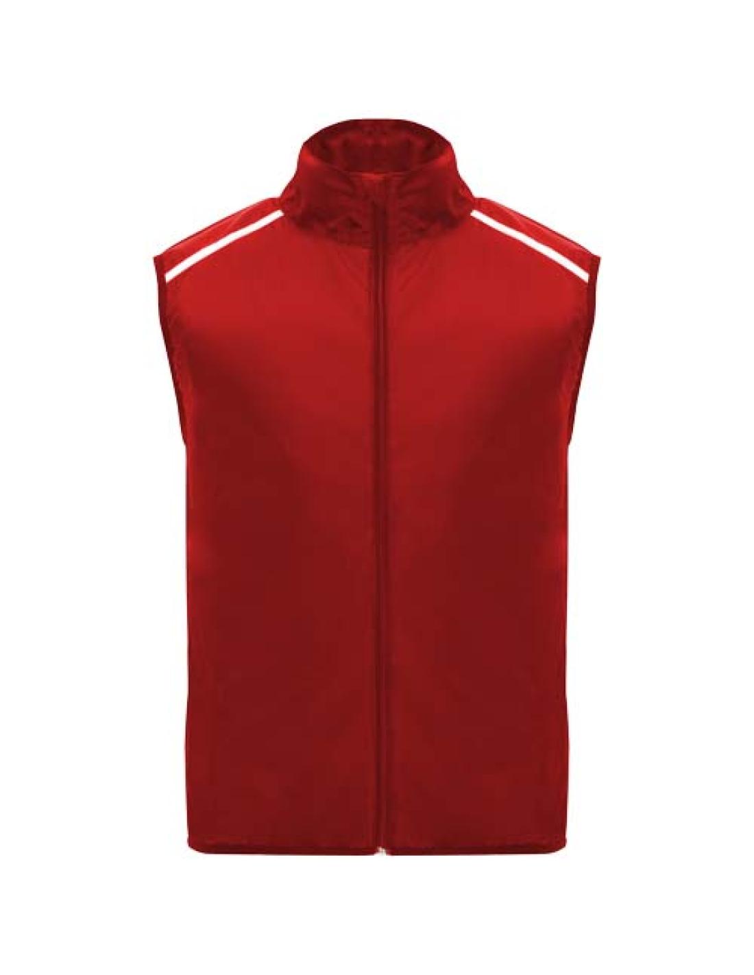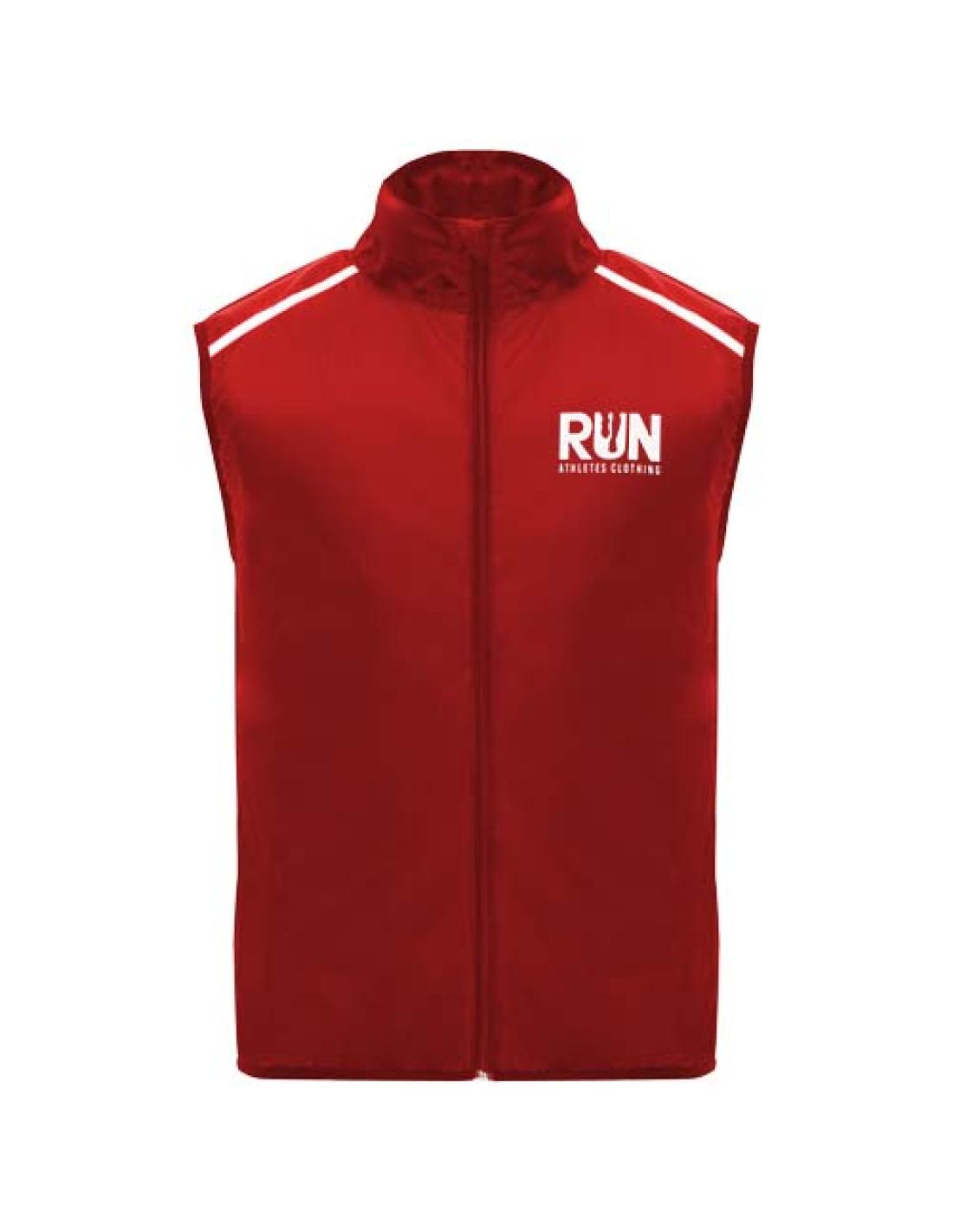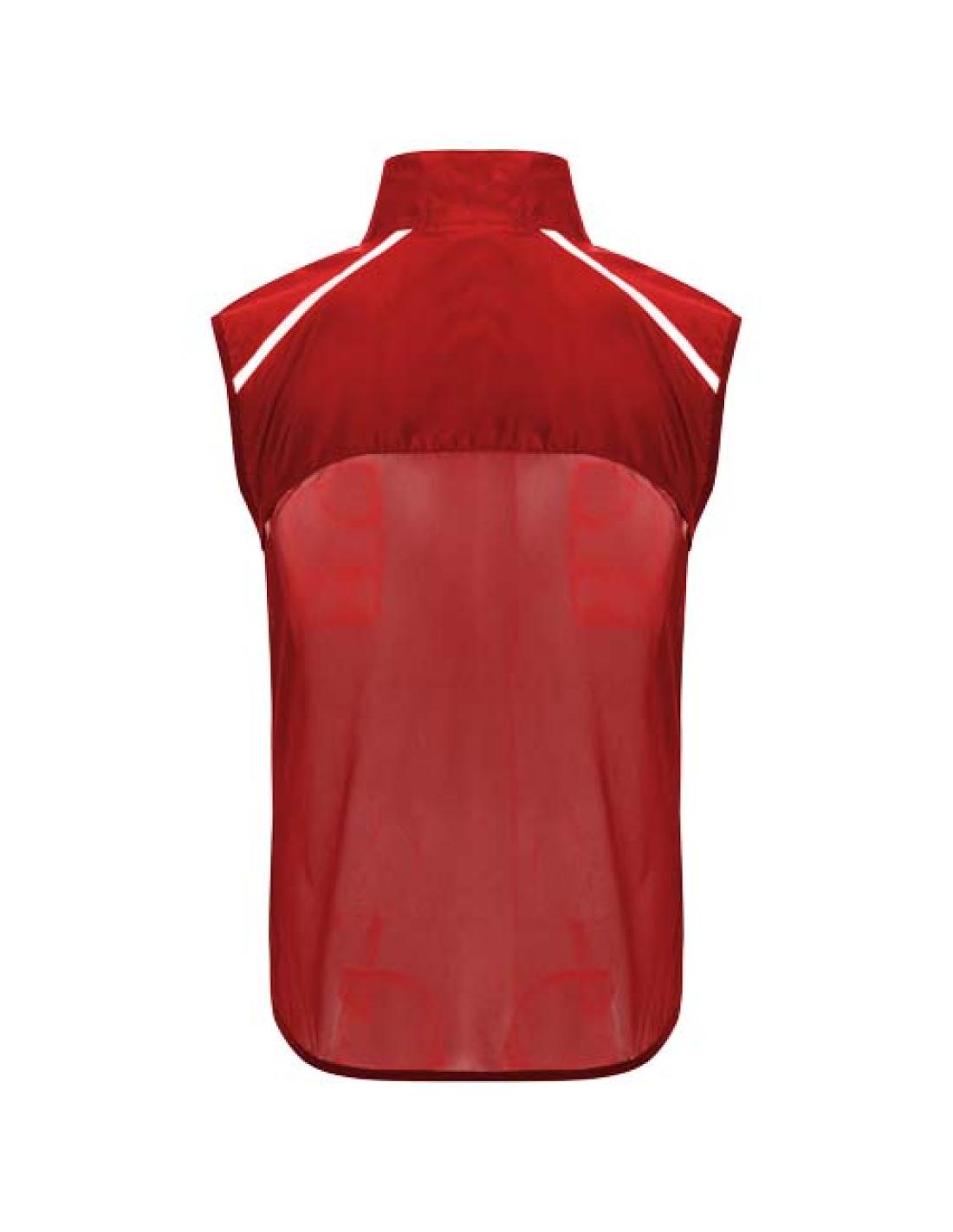 Cortavientos y transpirable. Cremallera delantera con protector de barbilla a juego. Ribete elástico en la sisa y el bajo. Parte inferior de la espalda en tejido microperforado. Detalles de alta visibilidad en la parte superior, delantera y trasera. Bolsillo con correa elástica para guardar el chaleco y llevarlo en la muñeca. Etiqueta extraíble.