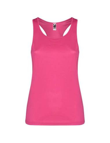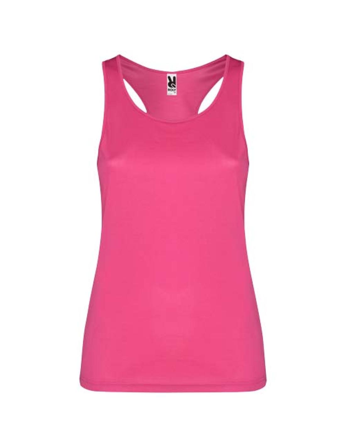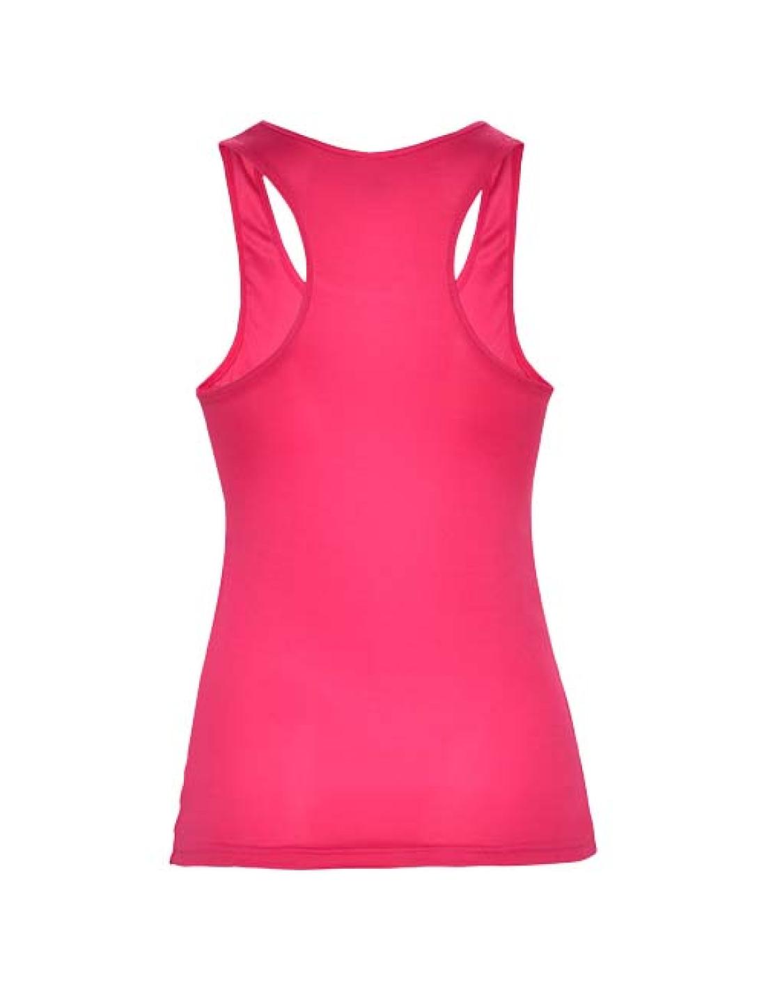 Tejido técnico, transpirable, fácil de lavar y secar. Sisas y escote acanalados. Espalda cruzada y costuras laterales. Etiqueta extraíble.