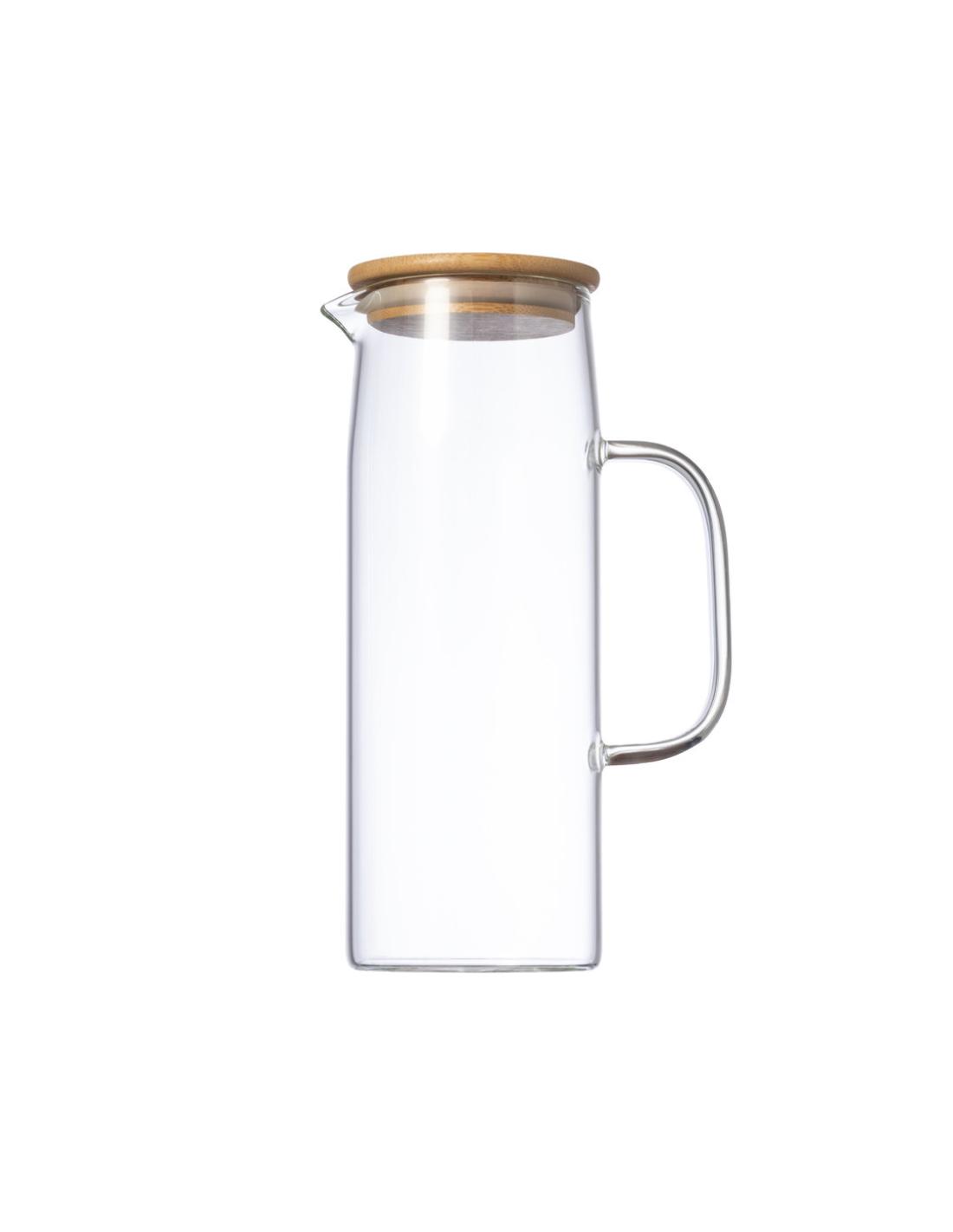 Jarra de 1,25 l de capacidad, fabricada en cristal de borosilicato, que ofrece una resistencia y durabilidad excepcionales, alargando su vida útil y pudiendo ser reutilizada infinidad de veces. Tapón en bambú con ajuste a presión. Presentado en caja individual de diseño kraft.