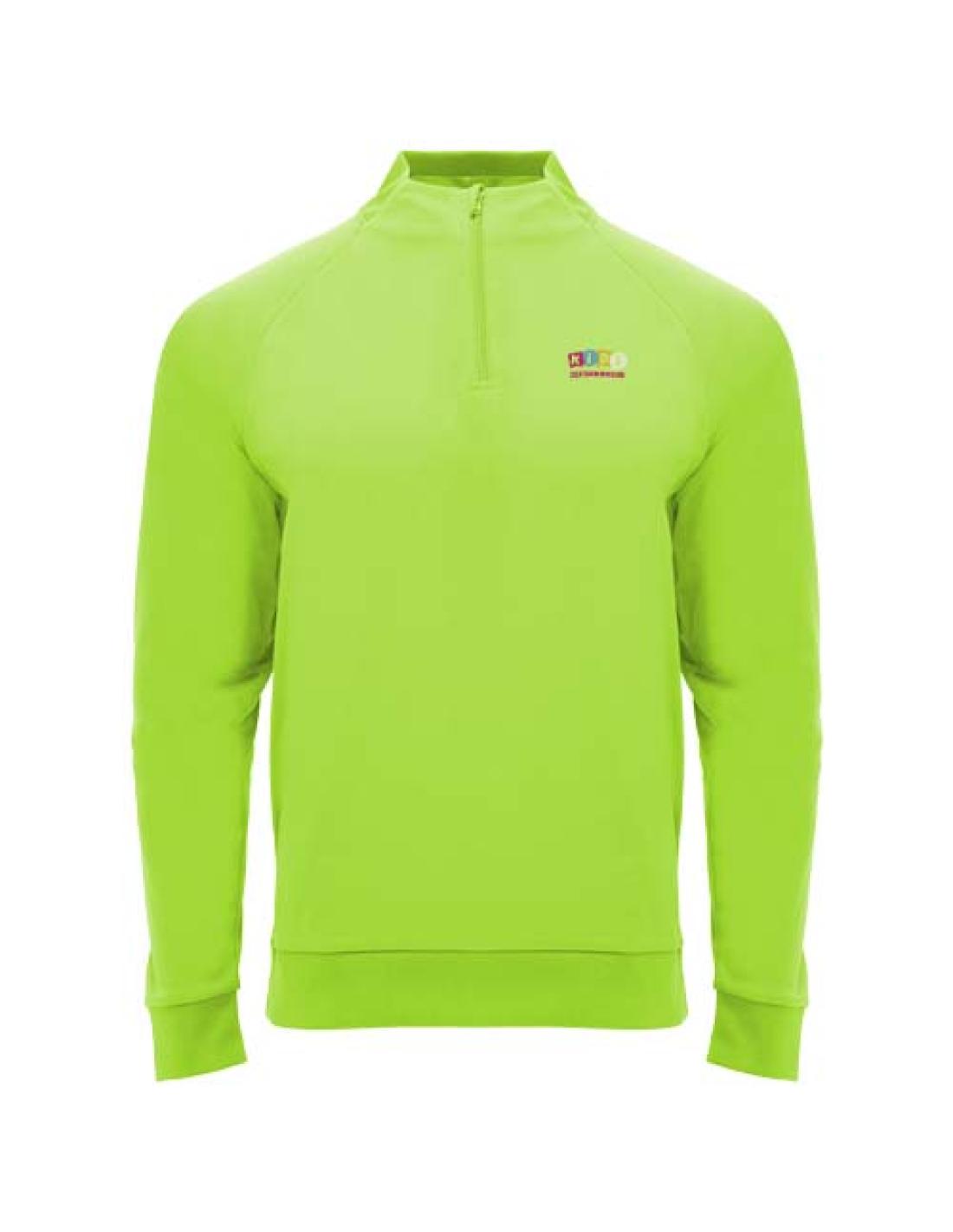 Tejido técnico. Mangas raglán. Vellón interior. Cuello con media cremallera y costuras forradas reforzadas a juego. Canalé 1x1 en cuello trasero, puños y dobladillo. Etiqueta extraíble. Sudadera a juego con los pantalones "Neapolis".