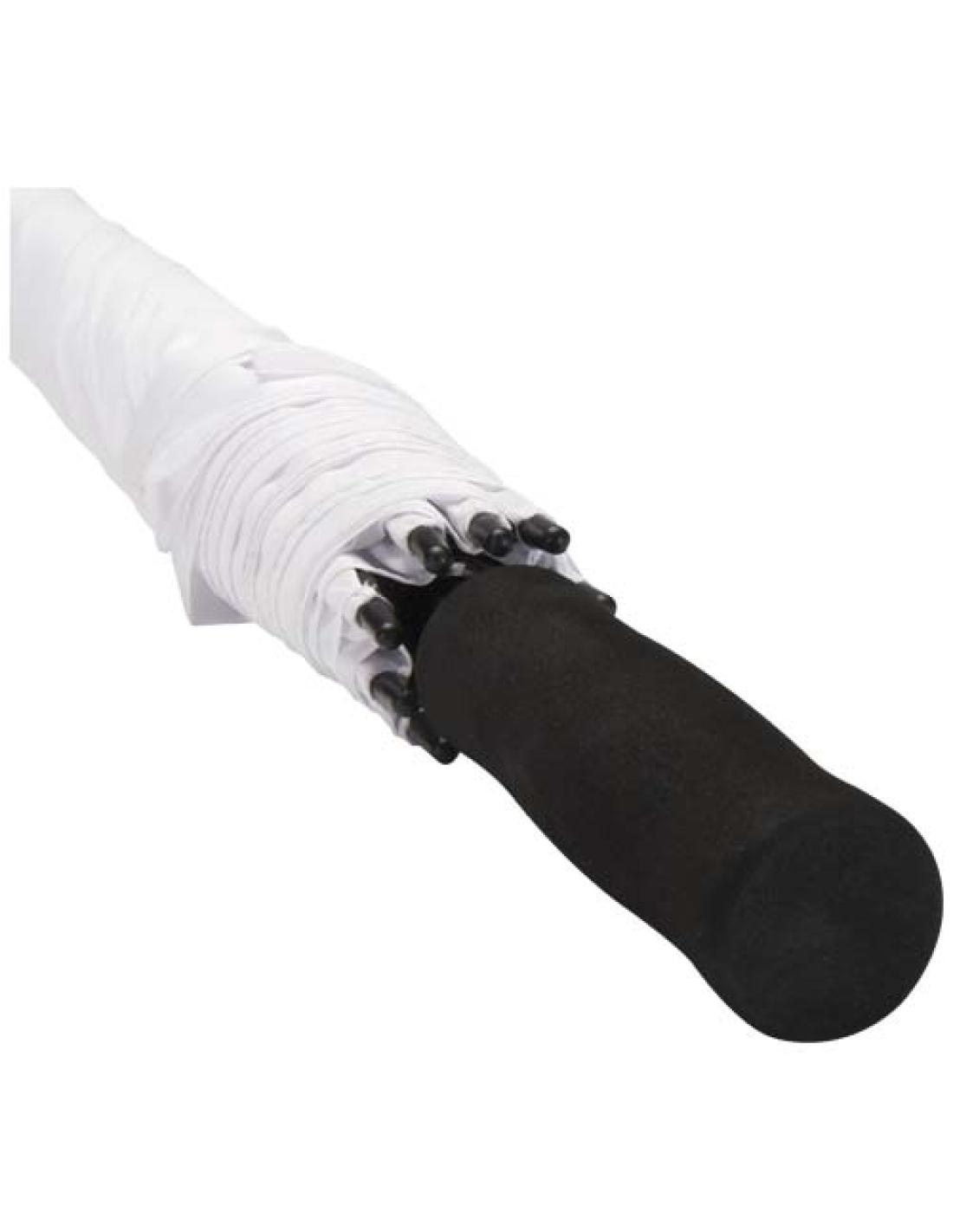 Paraguas de 27" con capa exterior de RPET 190T y un mango de plástico negro de 14,5 cm de largo que proporciona un agarre cómodo. El armazón de hierro de 14 mm garantiza la estabilidad incluso en condiciones de viento. El paraguas "Ibi" es un compañero de confianza para el día a día, ya que combina funcionalidad con una estética contemporánea.
